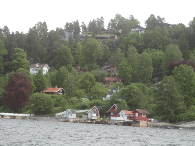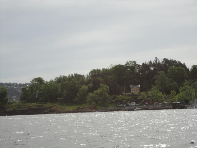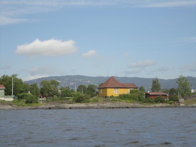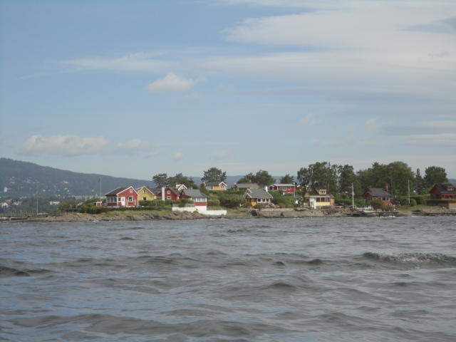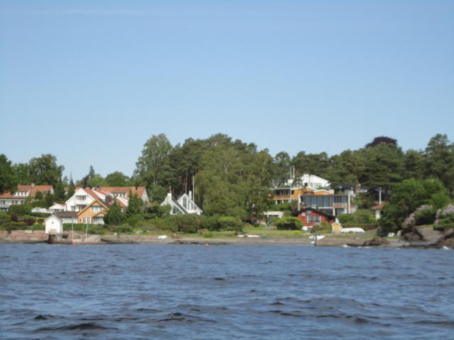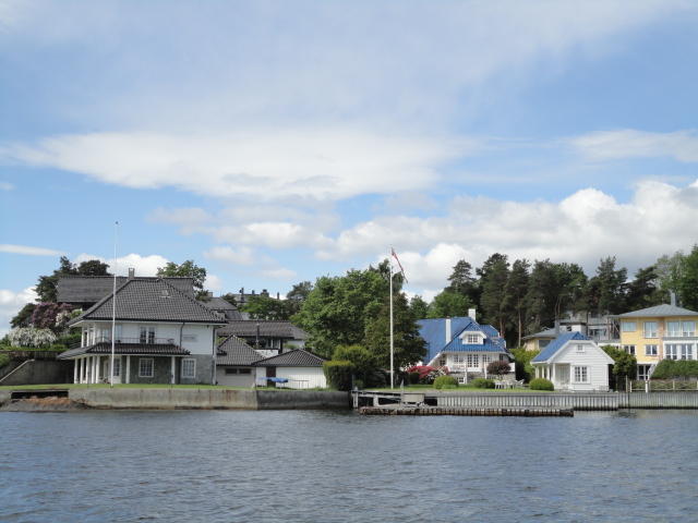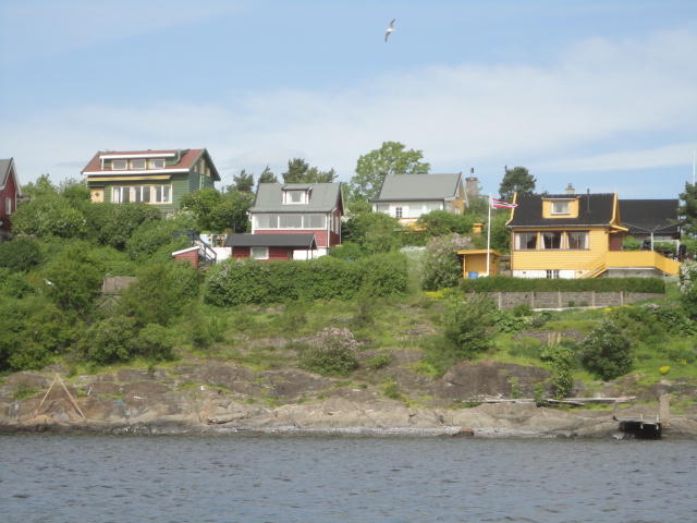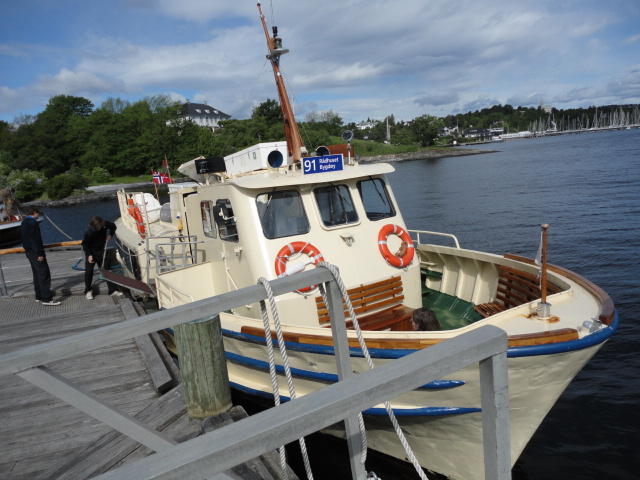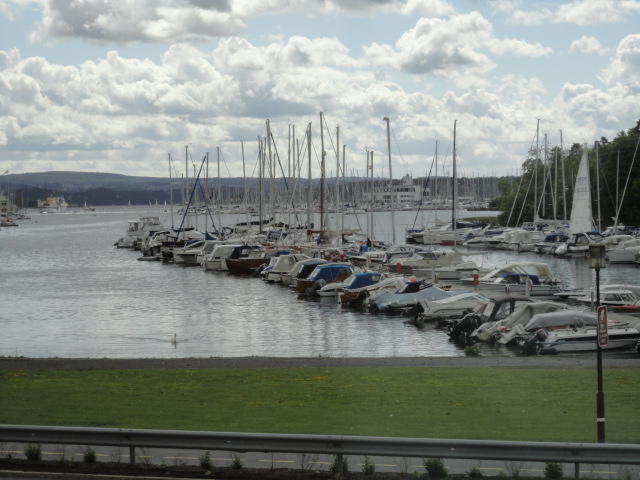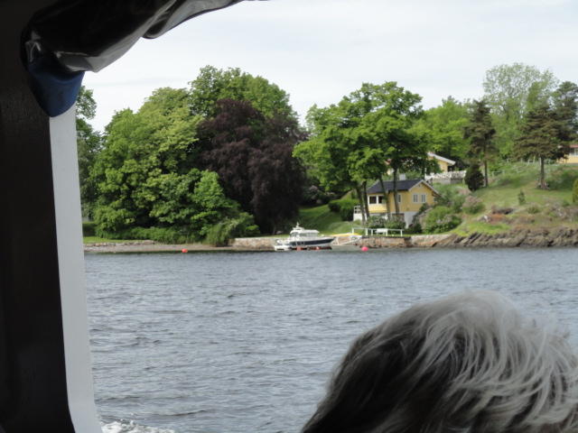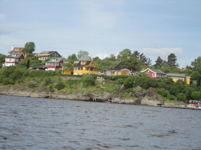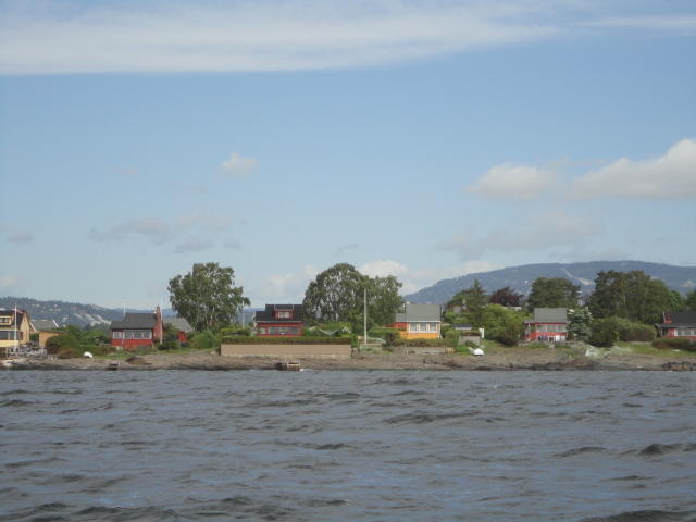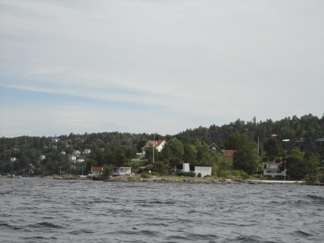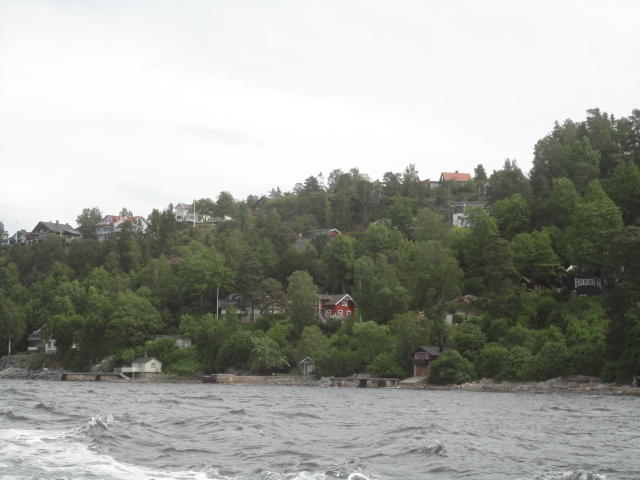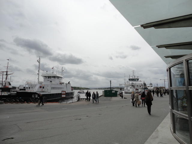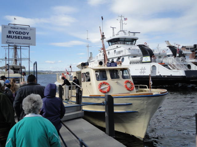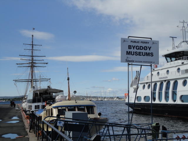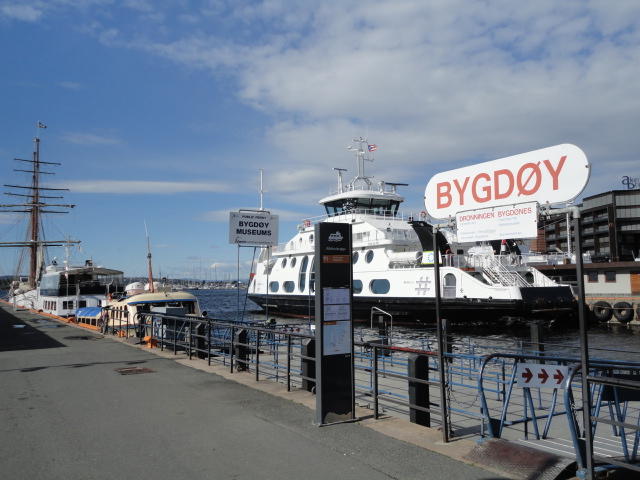 オスロ市庁舎の南側の港がAker Bryggeという場所で、ショッピングモール(一度も行かず)とか、 色々なクルーズ船などの乗り場となっています。 オスロカードで乗れる、湾の対岸のBYGDOY地区にはいくつもの博物館がある、ということで、 ここに渡る船に乗りました。 オスロ湾そのものが、スカンジナビア半島で有名なフィヨルドであり、BYGDOY地区というのも、 個人所有のヨットやボート、別荘(コテージ)などが並ぶ場所でした。
