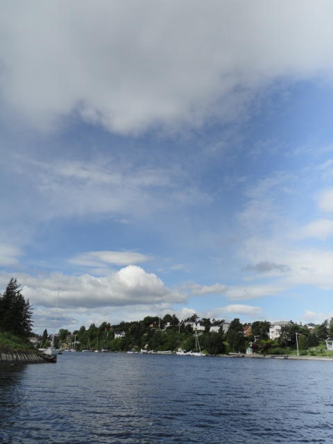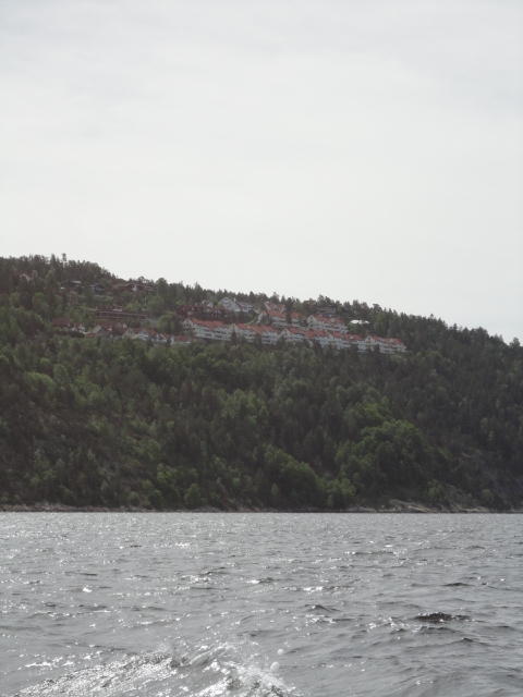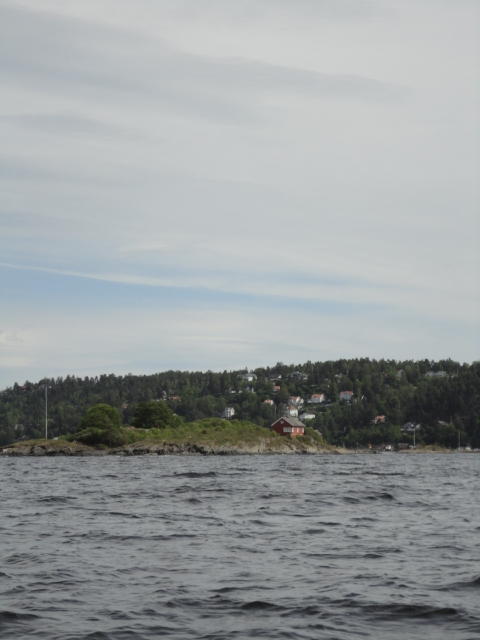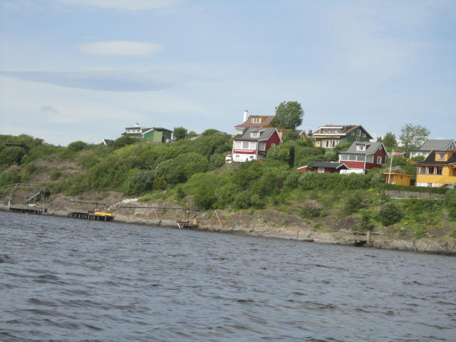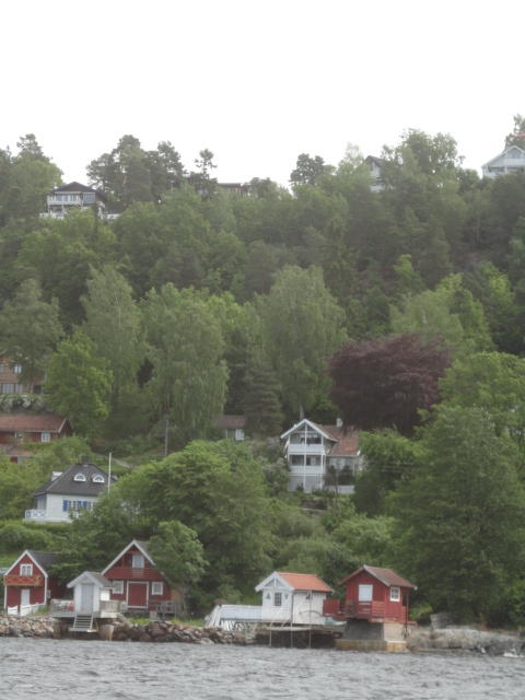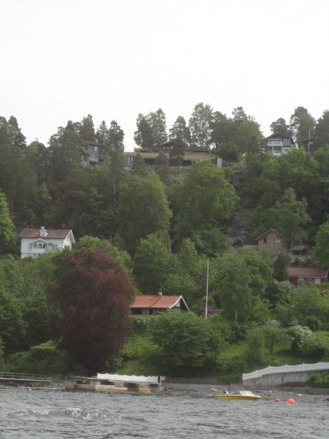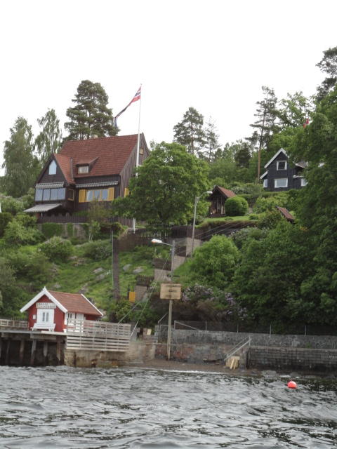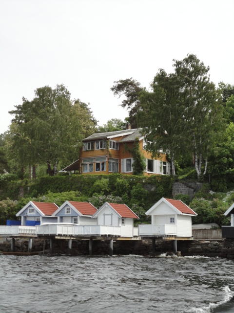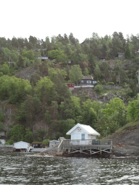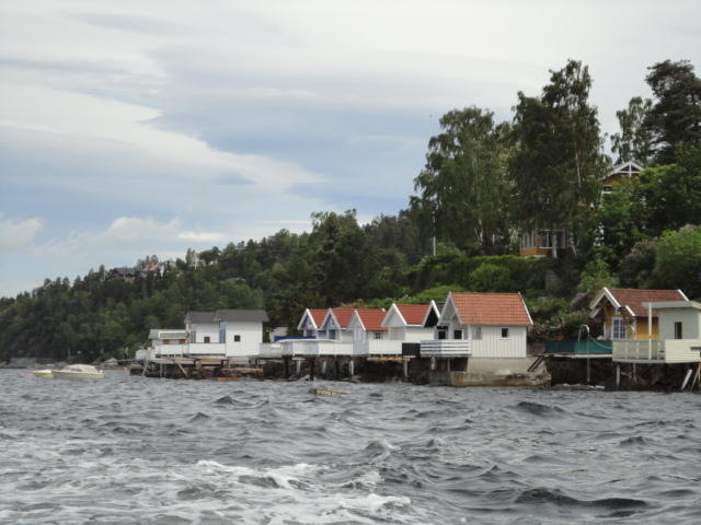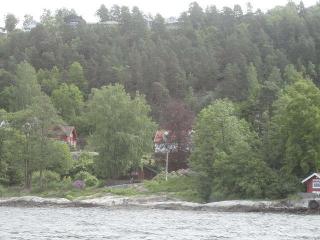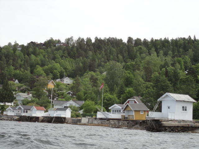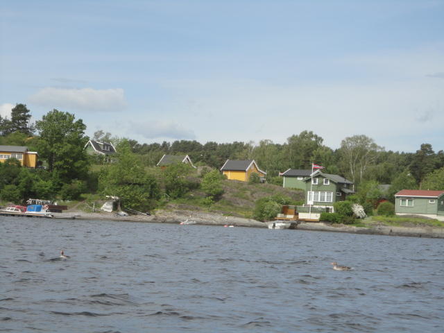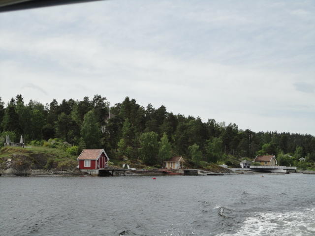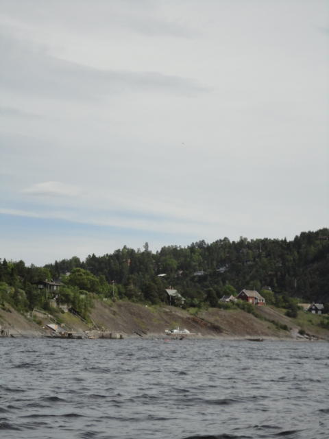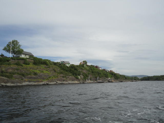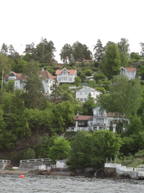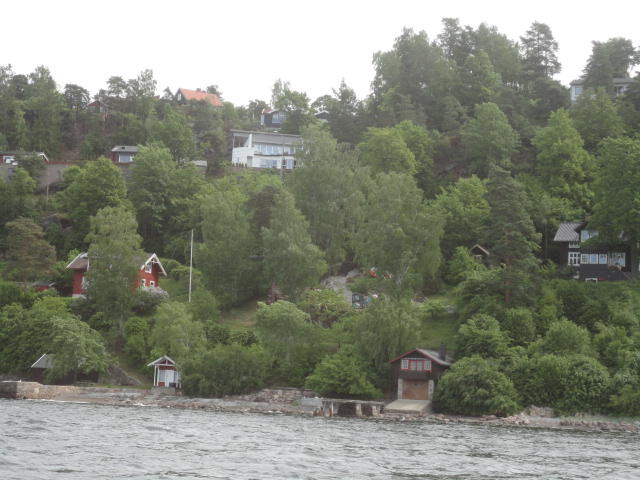 オスロ市庁舎の南側の港がAker Bryggeという場所で、ショッピングモール(一度も行かず)とか、 色々なクルーズ船などの乗り場となっています。 オスロカードで乗れる、湾の対岸のBYGDOY地区にはいくつもの博物館がある、ということで、 ここに渡る船に乗りました。 オスロ湾そのものが、スカンジナビア半島で有名なフィヨルドであり、BYGDOY地区というのも、 個人所有のヨットやボート、別荘(コテージ)などが並ぶ場所でした。