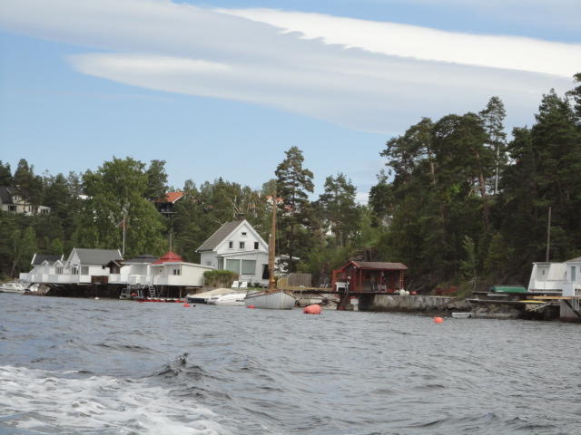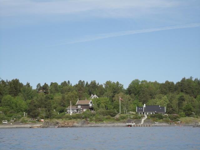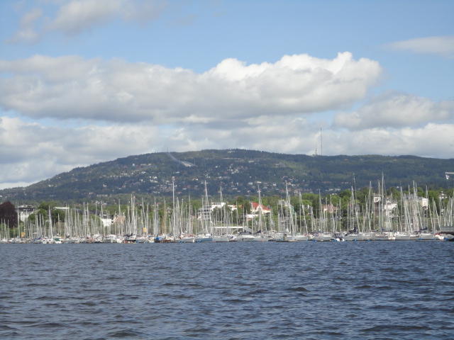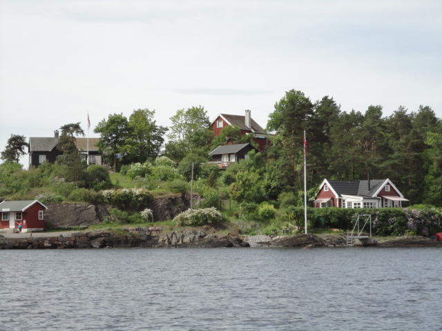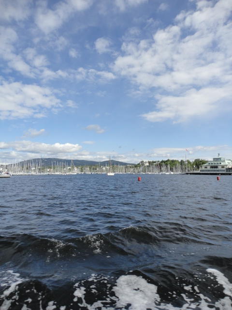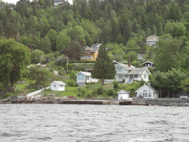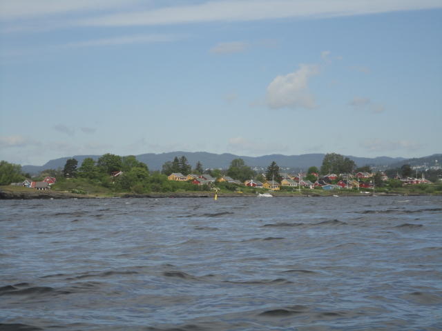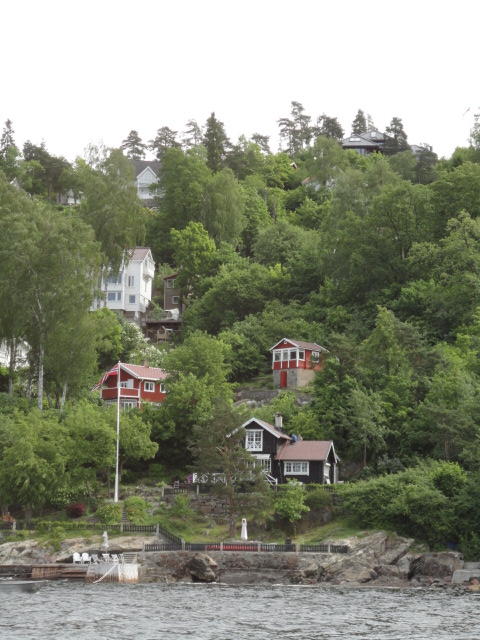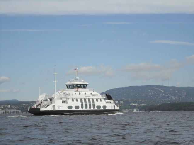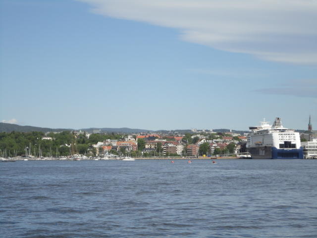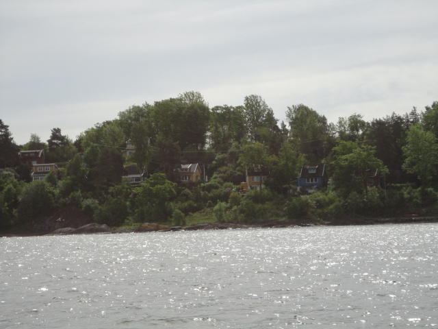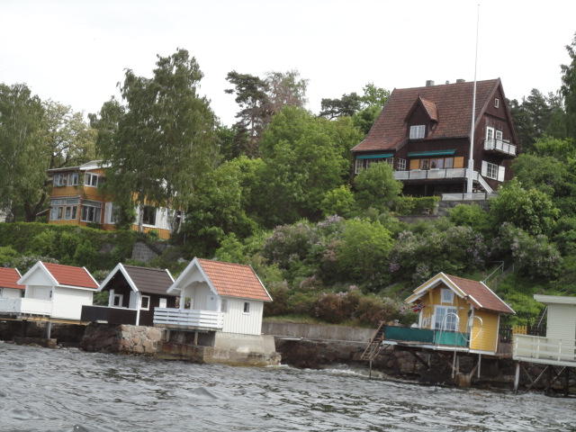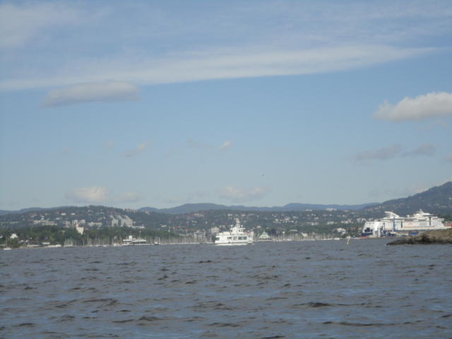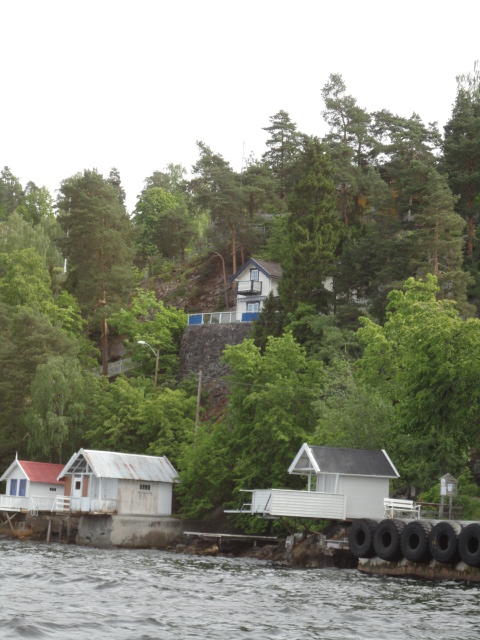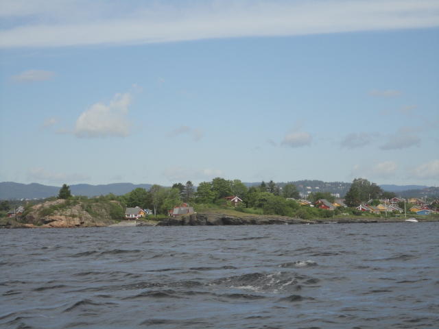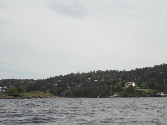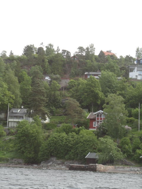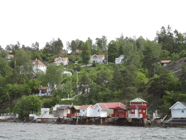 オスロ市庁舎の南側の港がAker Bryggeという場所で、ショッピングモール(一度も行かず)とか、 色々なクルーズ船などの乗り場となっています。 オスロカードで乗れる、湾の対岸のBYGDOY地区にはいくつもの博物館がある、ということで、 ここに渡る船に乗りました。 オスロ湾そのものが、スカンジナビア半島で有名なフィヨルドであり、BYGDOY地区というのも、 個人所有のヨットやボート、別荘(コテージ)などが並ぶ場所でした。