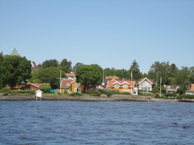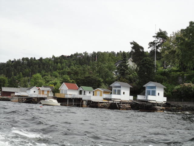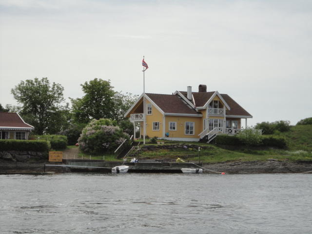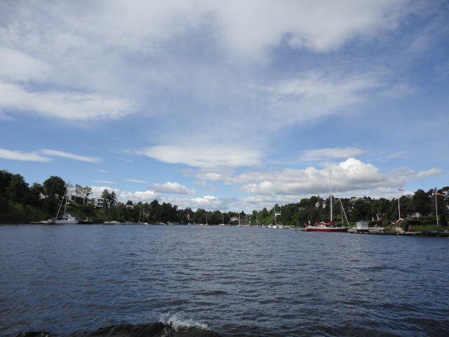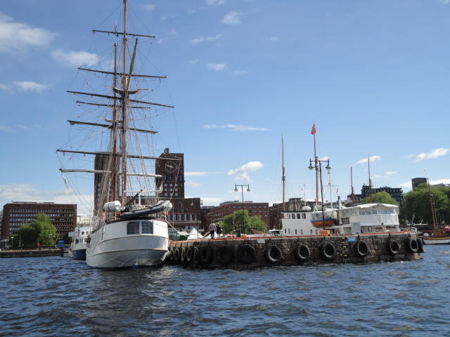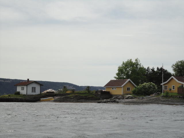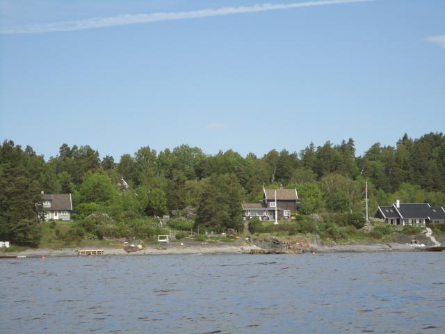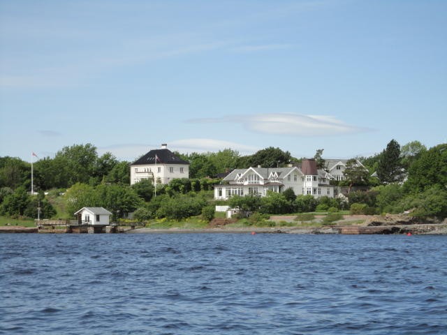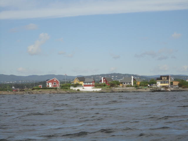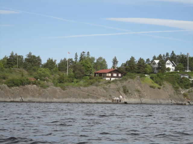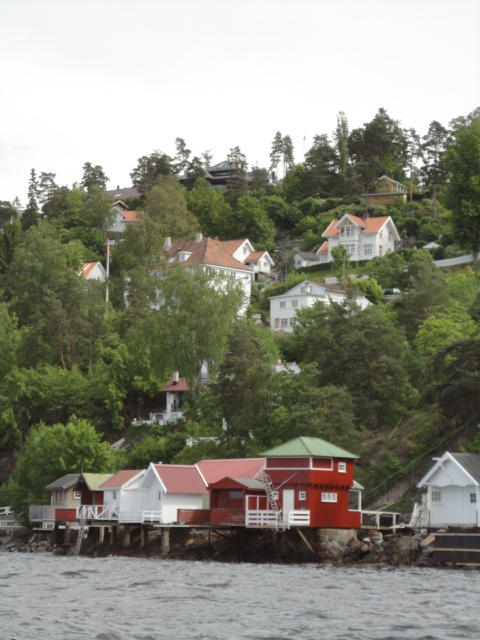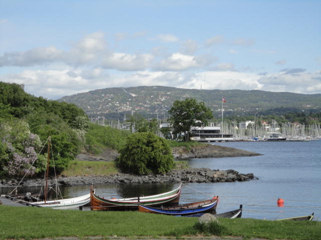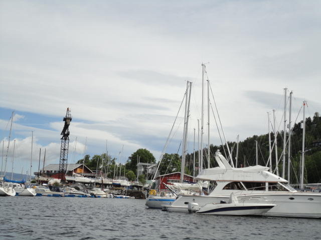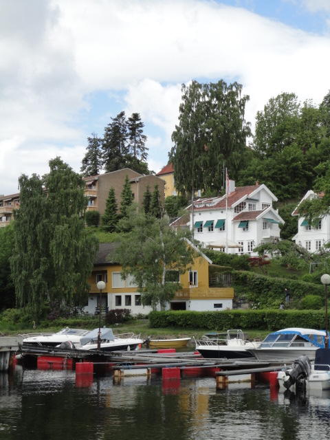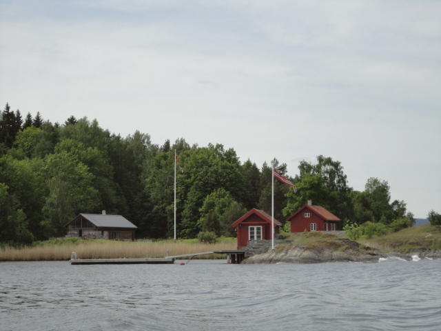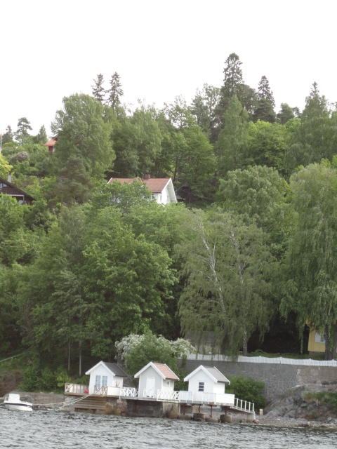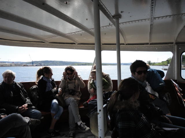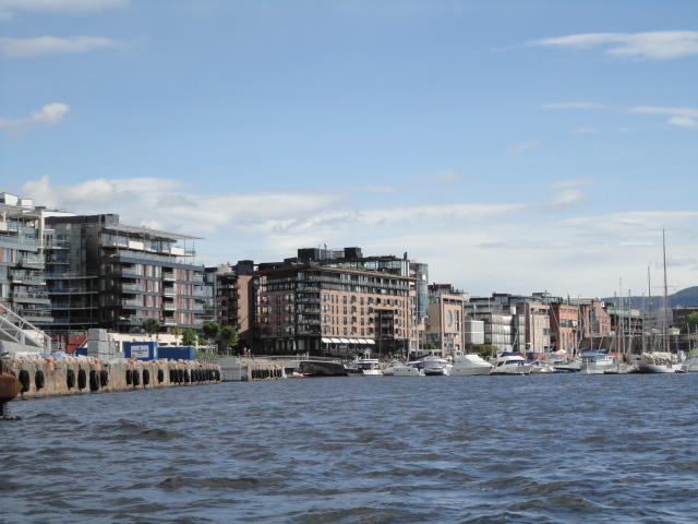 オスロ市庁舎の南側の港がAker Bryggeという場所で、ショッピングモール(一度も行かず)とか、 色々なクルーズ船などの乗り場となっています。 オスロカードで乗れる、湾の対岸のBYGDOY地区にはいくつもの博物館がある、ということで、 ここに渡る船に乗りました。 オスロ湾そのものが、スカンジナビア半島で有名なフィヨルドであり、BYGDOY地区というのも、 個人所有のヨットやボート、別荘(コテージ)などが並ぶ場所でした。