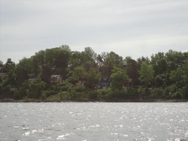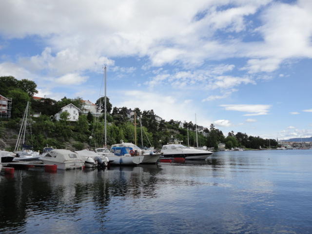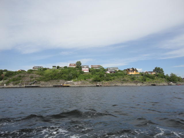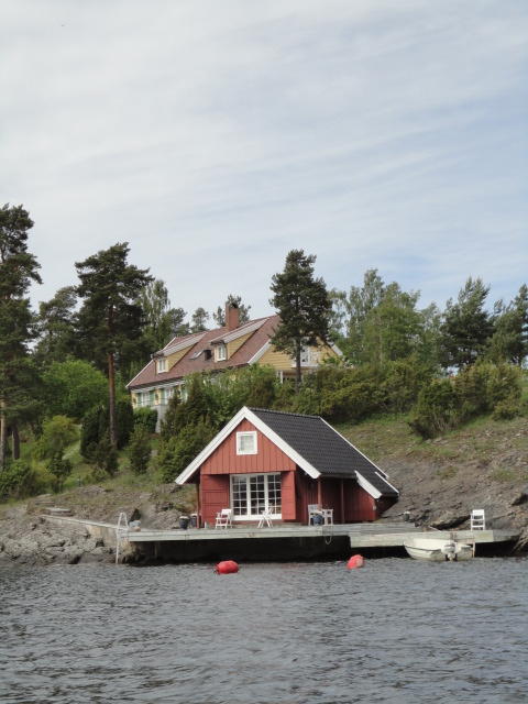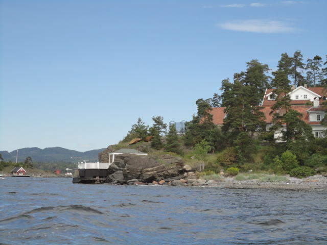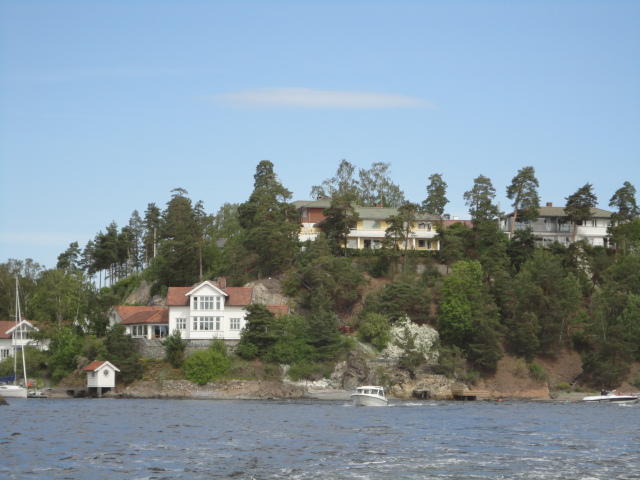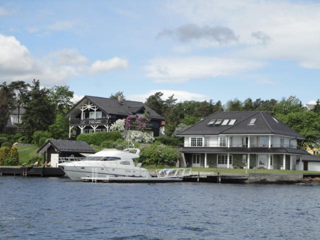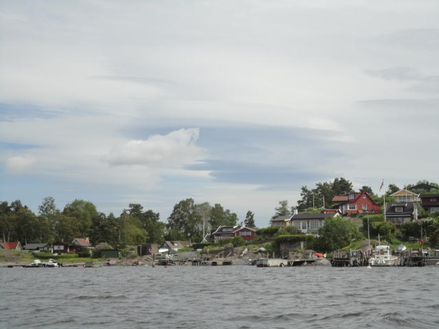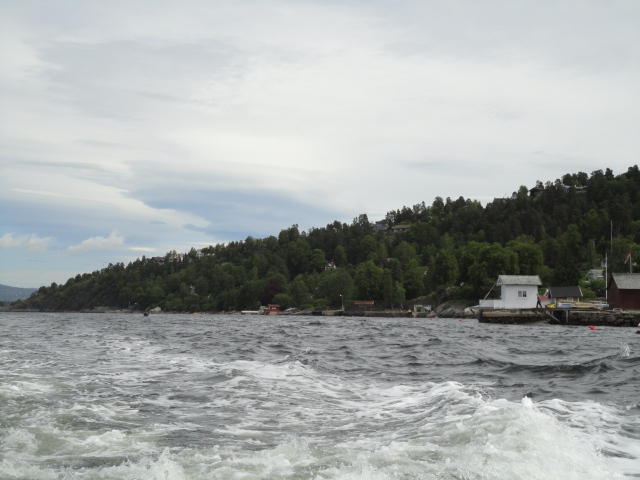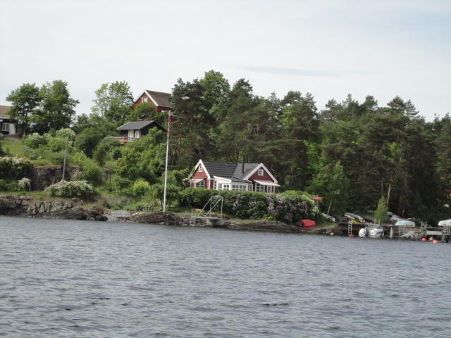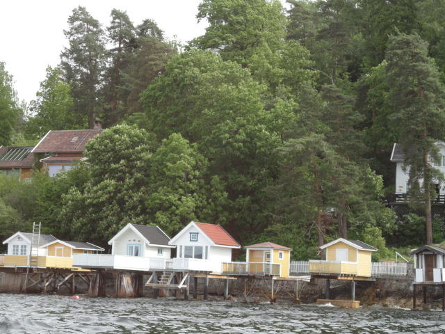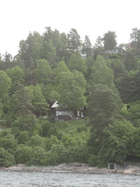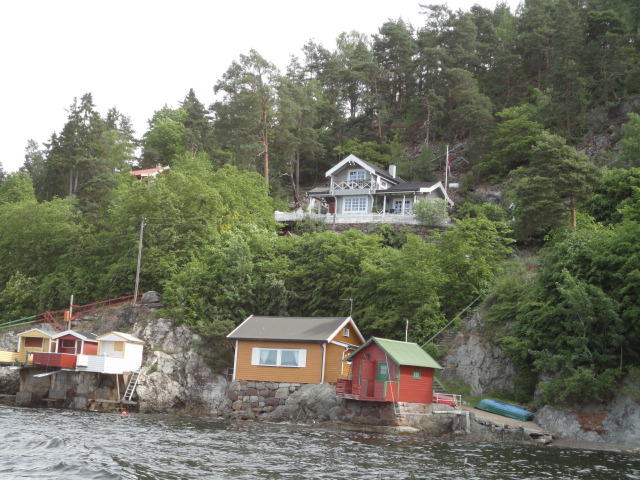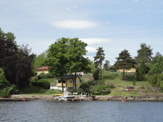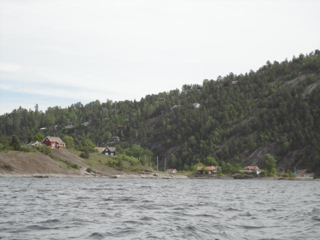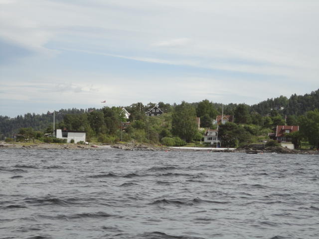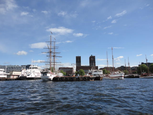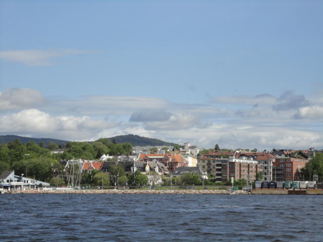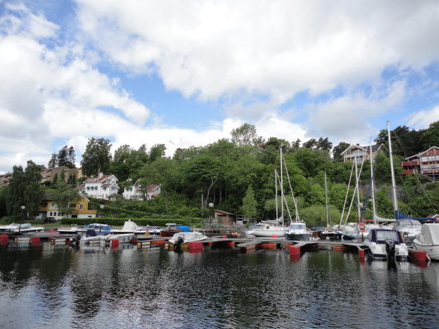 オスロ市庁舎の南側の港がAker Bryggeという場所で、ショッピングモール(一度も行かず)とか、 色々なクルーズ船などの乗り場となっています。 オスロカードで乗れる、湾の対岸のBYGDOY地区にはいくつもの博物館がある、ということで、 ここに渡る船に乗りました。 オスロ湾そのものが、スカンジナビア半島で有名なフィヨルドであり、BYGDOY地区というのも、 個人所有のヨットやボート、別荘(コテージ)などが並ぶ場所でした。
