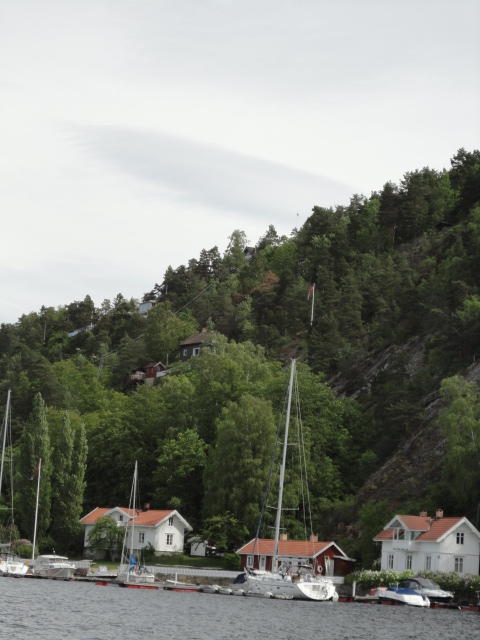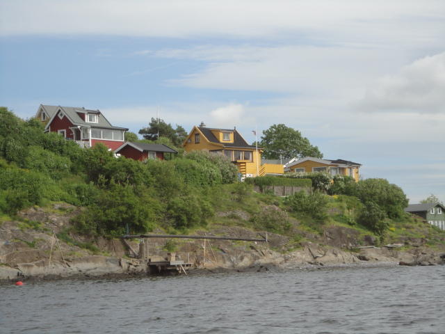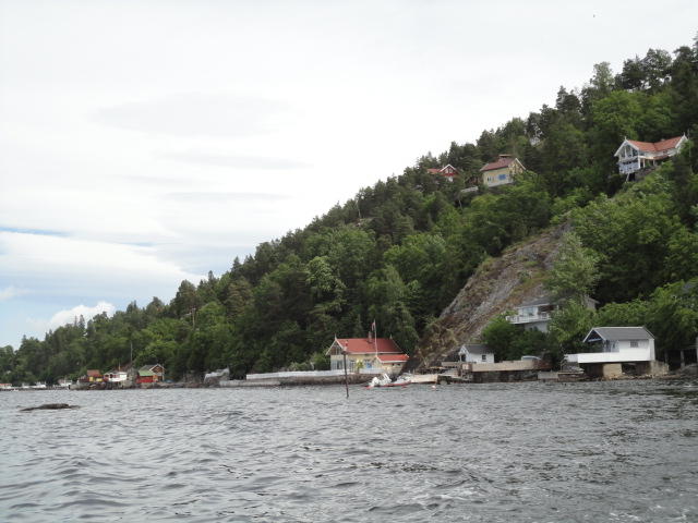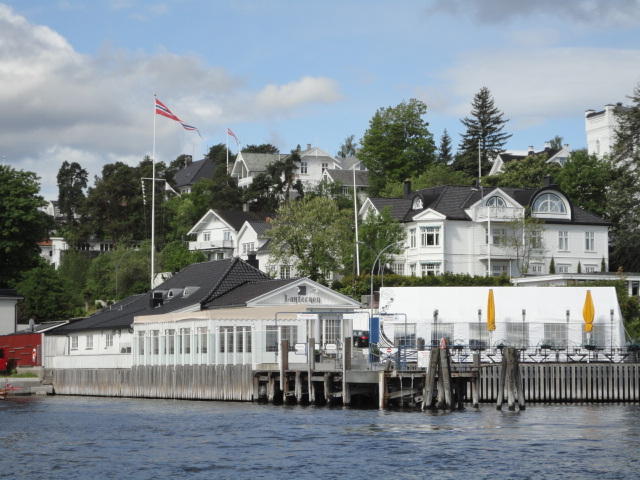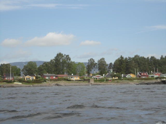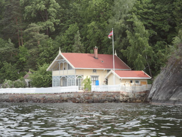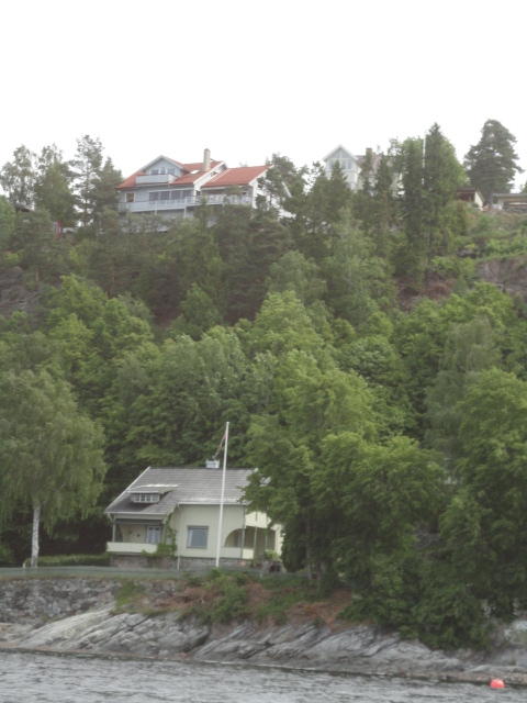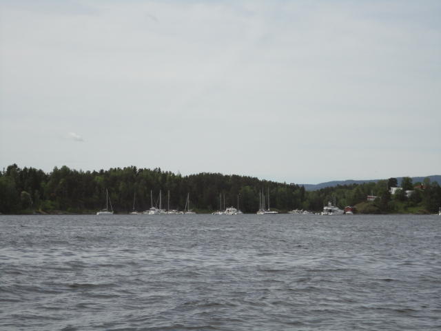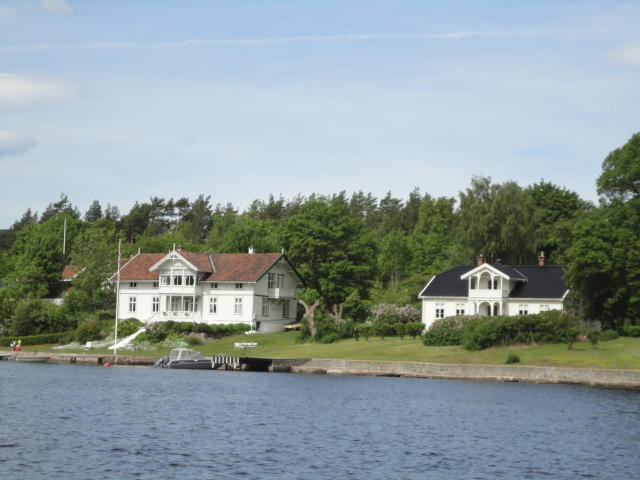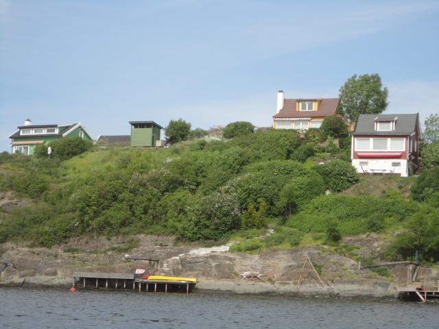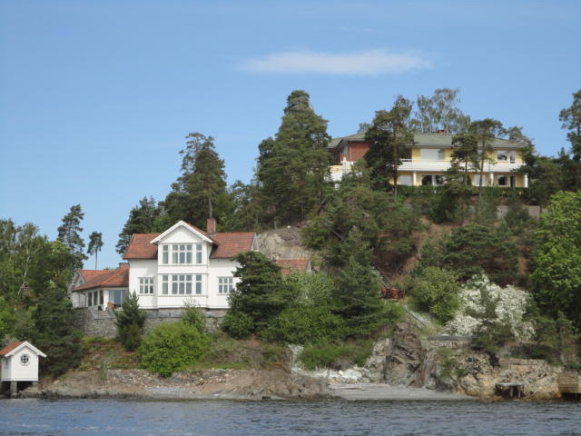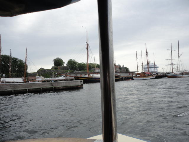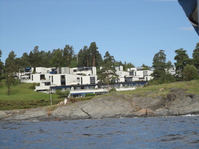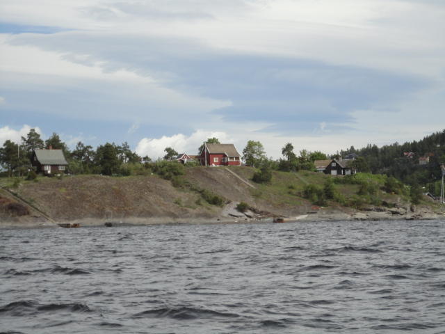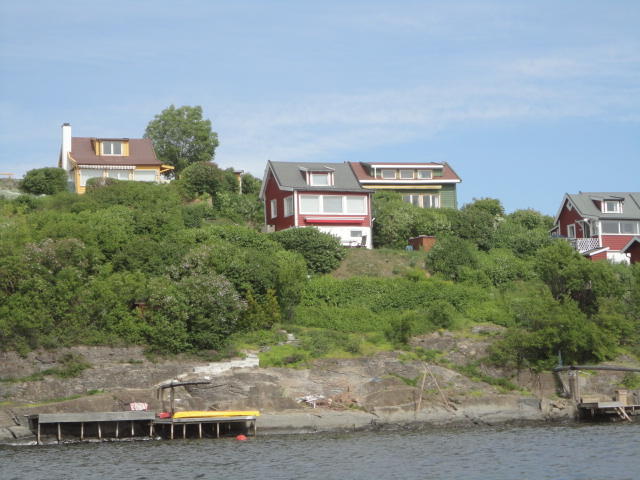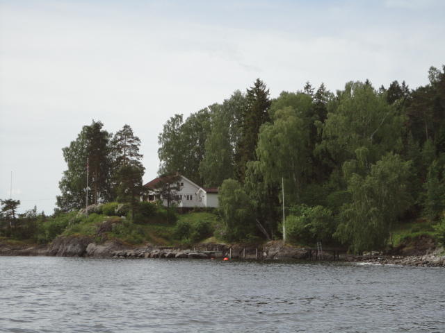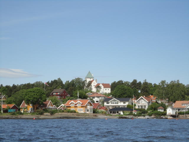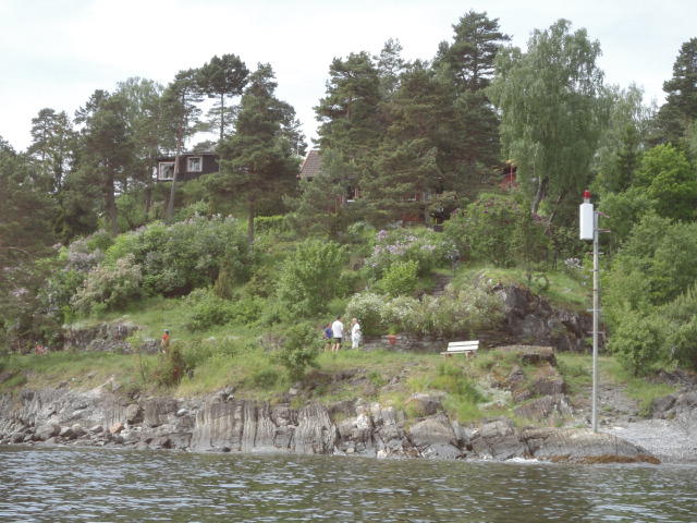 オスロ市庁舎の南側の港がAker Bryggeという場所で、ショッピングモール(一度も行かず)とか、 色々なクルーズ船などの乗り場となっています。 オスロカードで乗れる、湾の対岸のBYGDOY地区にはいくつもの博物館がある、ということで、 ここに渡る船に乗りました。 オスロ湾そのものが、スカンジナビア半島で有名なフィヨルドであり、BYGDOY地区というのも、 個人所有のヨットやボート、別荘(コテージ)などが並ぶ場所でした。