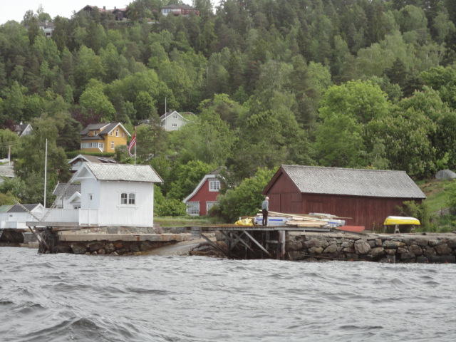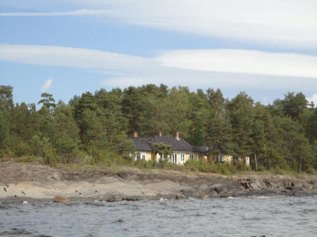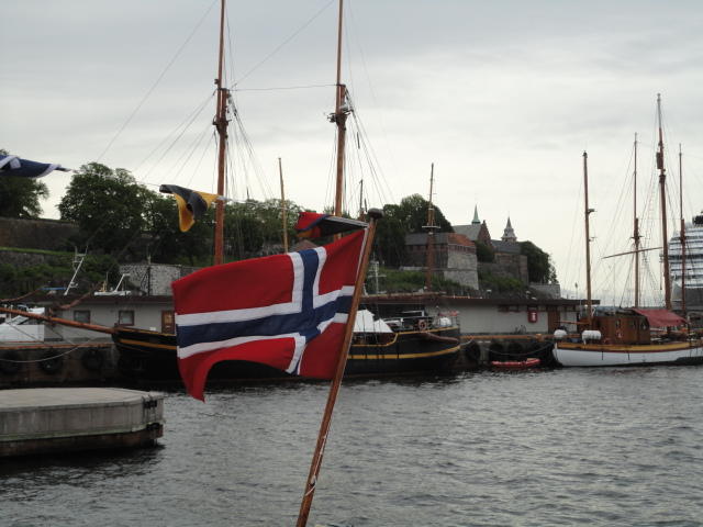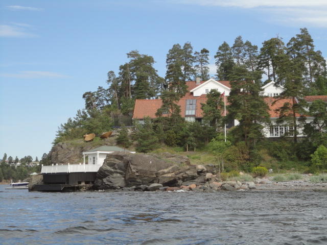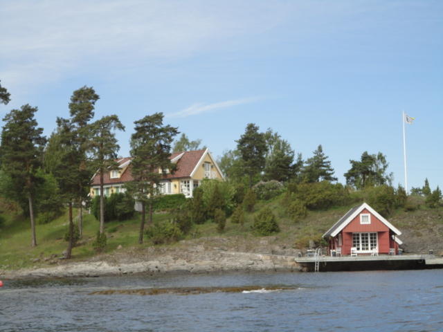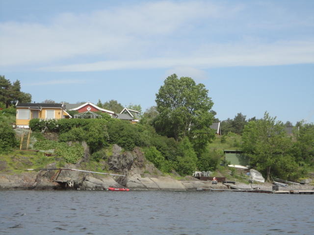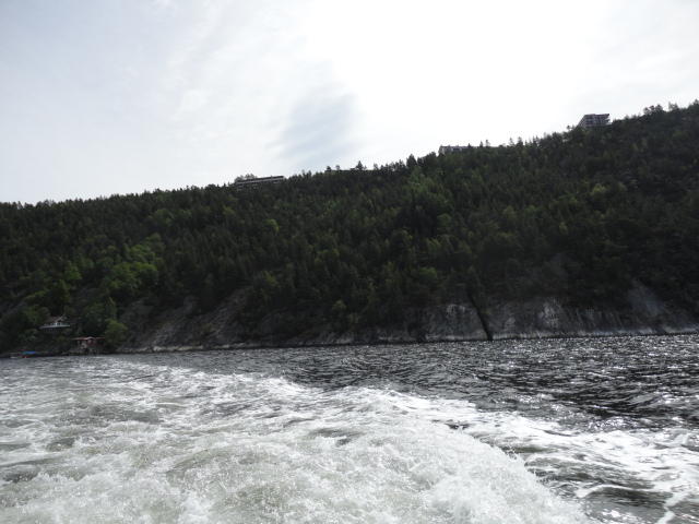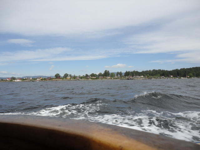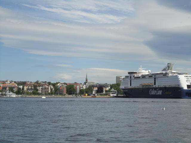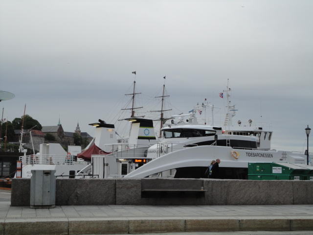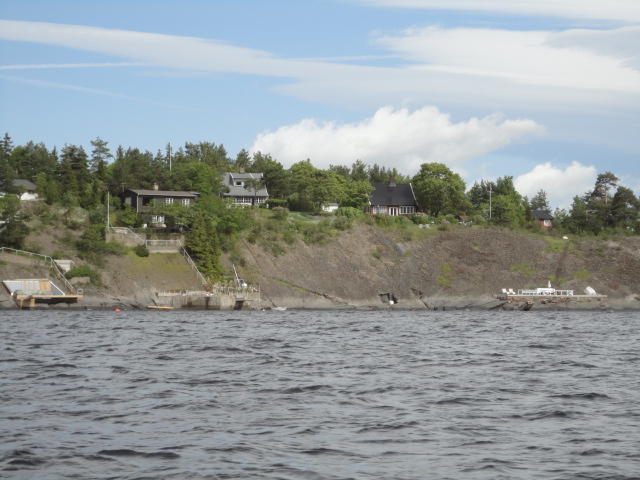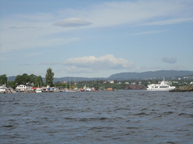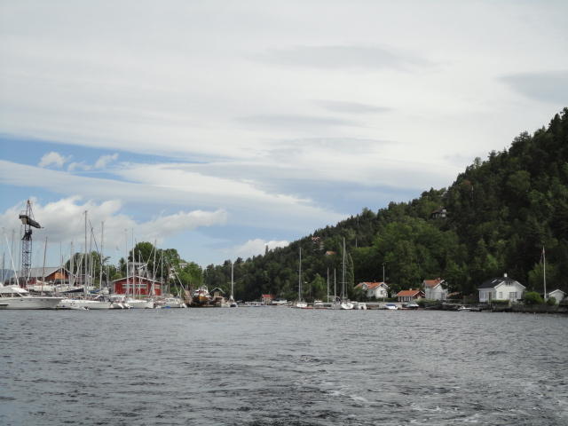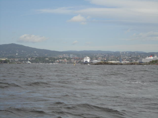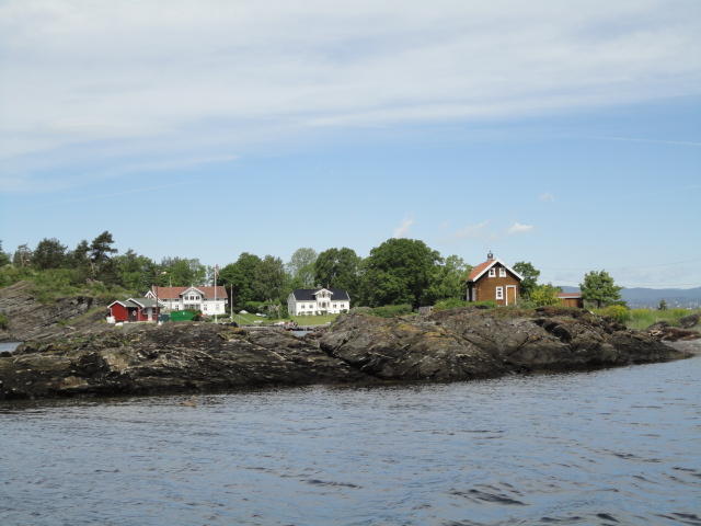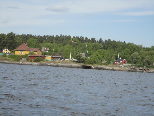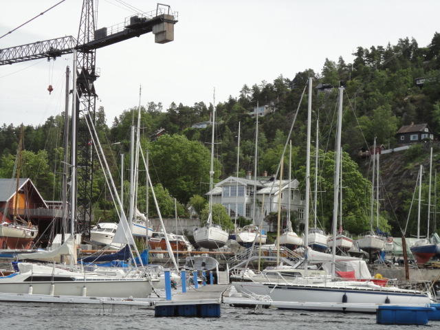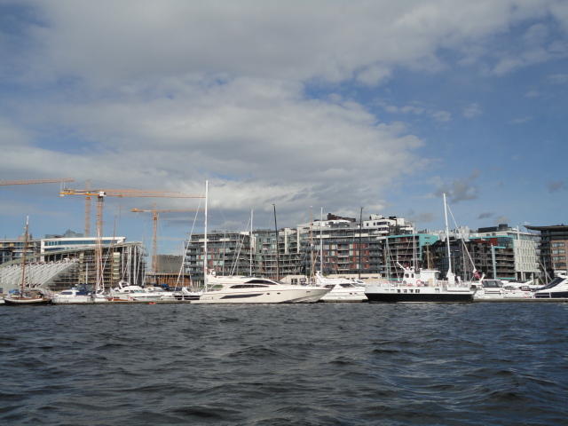 オスロ市庁舎の南側の港がAker Bryggeという場所で、ショッピングモール(一度も行かず)とか、 色々なクルーズ船などの乗り場となっています。 オスロカードで乗れる、湾の対岸のBYGDOY地区にはいくつもの博物館がある、ということで、 ここに渡る船に乗りました。 オスロ湾そのものが、スカンジナビア半島で有名なフィヨルドであり、BYGDOY地区というのも、 個人所有のヨットやボート、別荘(コテージ)などが並ぶ場所でした。