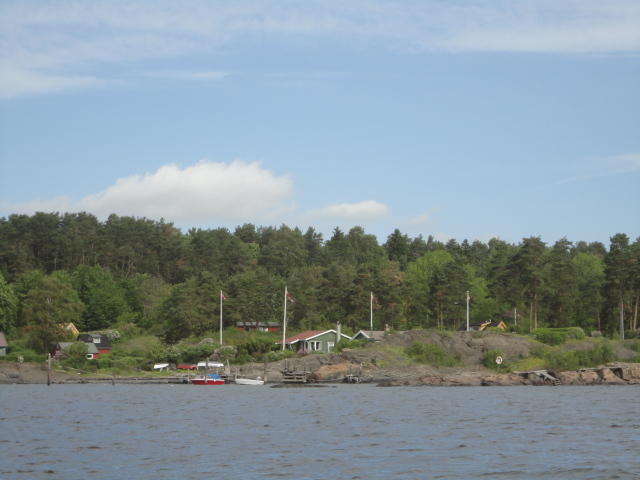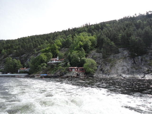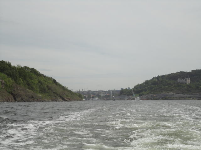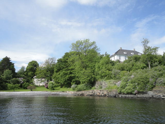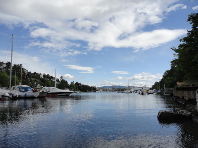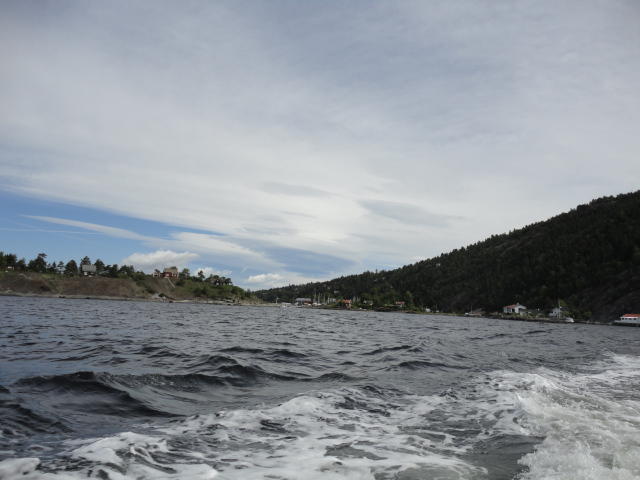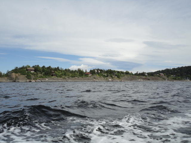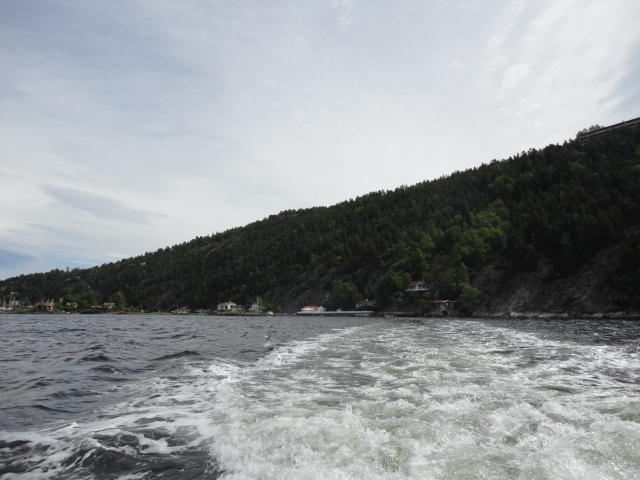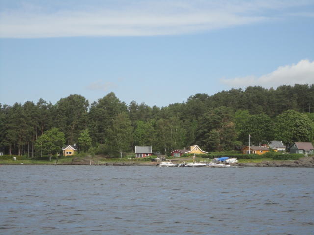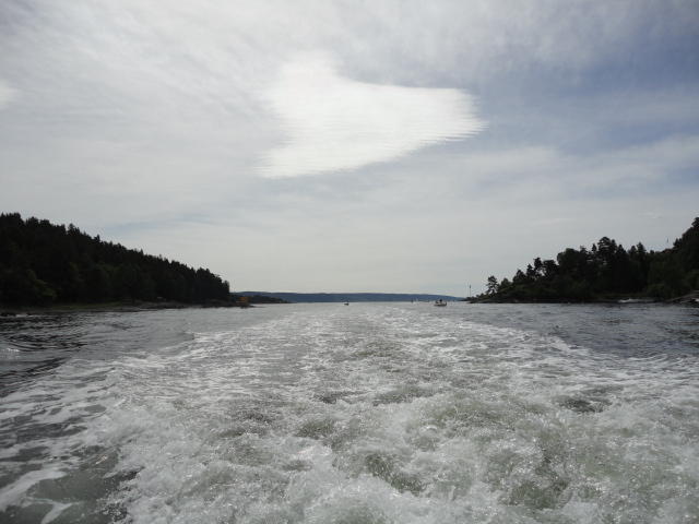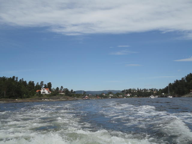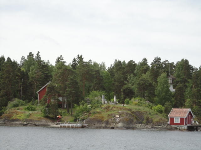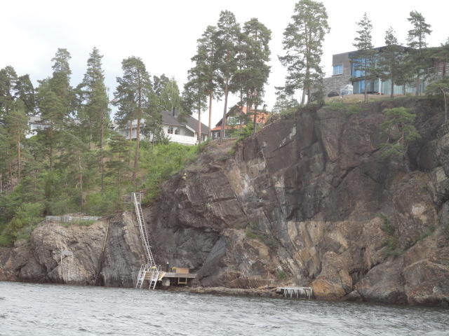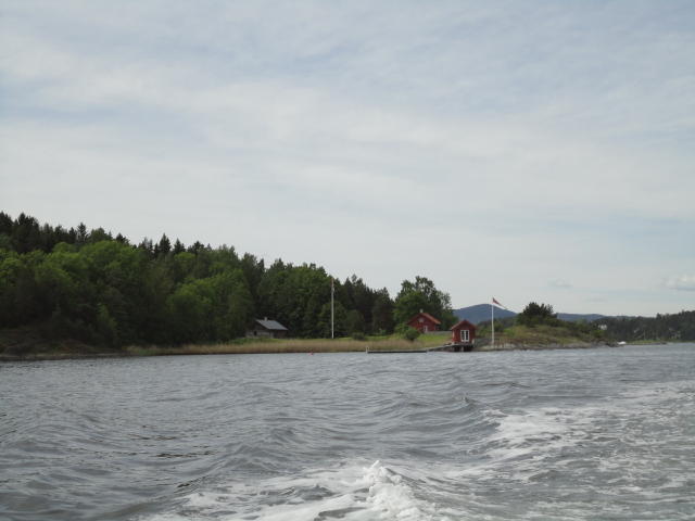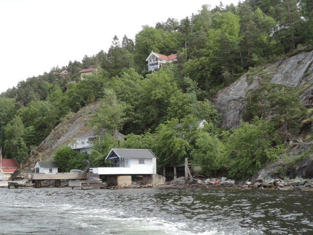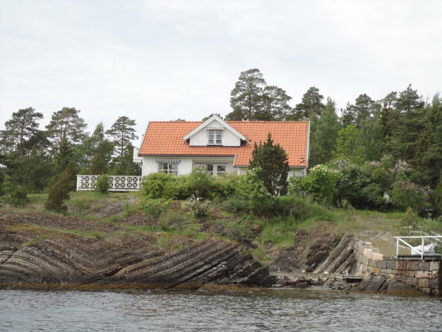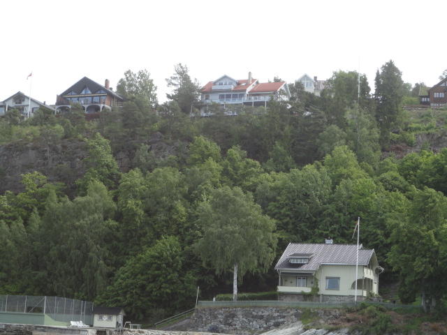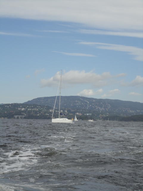 オスロ市庁舎の南側の港がAker Bryggeという場所で、ショッピングモール(一度も行かず)とか、 色々なクルーズ船などの乗り場となっています。 オスロカードで乗れる、湾の対岸のBYGDOY地区にはいくつもの博物館がある、ということで、 ここに渡る船に乗りました。 オスロ湾そのものが、スカンジナビア半島で有名なフィヨルドであり、BYGDOY地区というのも、 個人所有のヨットやボート、別荘(コテージ)などが並ぶ場所でした。