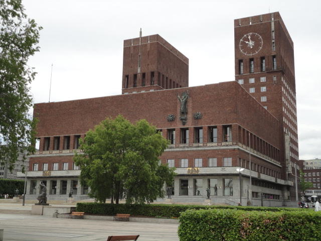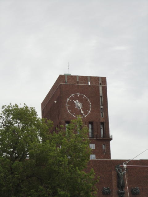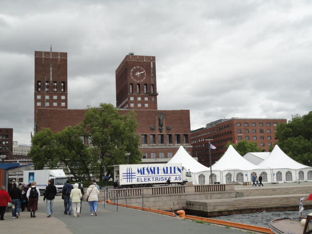 オスロの日の出は午前4時半頃、そして日没は22:30頃(その後も薄暗くなるが真っ暗にはならない)、という高緯度の街です。 直前の1週間予報では、北欧にいくつもの前線が来るので、日本の梅雨とは違うにしても、ほぼ毎日「雨」という予報でした。 この日はPre NIME2011のWorkshop/Tutorialのスタートで、翌日まで以下のような企画が予定されていました。 しかし、相当に高額な参加費に見合うほどソソラレルものが無かった(大半は既に知っている)ので結局パスしたので、 この日は時差ぼけ解消と現地の土地勘を得るための散歩の日、となりました。SATURDAY 28 MAY 09.00-12.00 Hardware Hacking Workshop Nicolas Collins Soft Controller and Synthesizer Workshop (sold out) Lara Grant and Sarah Grant Designing Mobile Instruments and Performances in urMus Georg Essl and Patrick O'Keefe Optical Motion Capture Technology (part I) Birgitta Burger, Kristian Nymoen, Arve Voldsund and Stale A. Skogstad Integra Live software for performers and composers (part I) Dag Henning Kalvoy and Henrik Sundt SATURDAY 28 MAY 13.00-16.00 Hardware Hacking Workshop continued Nicolas Collins Soft Controller and Synthesizer Workshop continued Lara Grant and Sarah Grant. Designing Mobile Instruments and Performances in urMus continued Georg Essl and Patrick O'Keefe Optical Motion Capture Technology (part II) Birgitta Burger, Kristian Nymoen, Arve Voldsund and Stale A. Skogstad. Integra Live software for performers and composers (part II) Dag Henning Kalvoy and Henrik Sundt. Introduction course to some alternative electronic instruments Daniel Schorno and Haraldur Karlsson New Interfaces for Live Looping Simon Morris and Richard Wilderberg SUNDAY 29 MAY 09.00-12.00 NIME Primer: A Gentle Introduction to Creating New Interfaces for Musical Expression Sidney Fels and Michael Lyons Mapping Everything Else Workshop Georgios Papadakis, Berit Janssen and Jonathan Reus Basic Training for Group Improvisation Luis Alejandro Olarte NEXUS: Using Ruby on Rails and HTML5 to Distribute Browser Based Interfaces Jesse Allison Auditory Augmentation of Everyday Objects with Near Real-time Data Till Bovermann, Rene Tunnermann and Thomas Hermann A Workshop on NIME Education Michael Gurevich, Ben Knapp and Sergi Jorda SUNDAY 29 MAY 13.00-16.00 A Workshop on NIME Education continued Michael Gurevich, Ben Knapp and Sergi Jorda Musical performance with the Karlax controller Tom Mays and Remi Dury Hyperimprovisation Victoria Johnson and Alex Gunia Audio-graphic Modeling and Interaction Workshop Roland Cahen, Christian Jacquemin, Diemo Schwarz and Hui Ding Mapping Digital Musical Instruments with libmapper Joseph Malloch, Stephen Sinclair and Marcelo Wanderley Workshop on Multi-Modal Data Acquisition for Musical Research Javier Jaimovich, Nick Gillian, Miguel Angel Ortiz, Paolo Coletta and Esteban Maestreどうも体感として日本の2倍以上の物価なので、いつもは朝食ナシなのを、 ホテル代に含まれている朝食で栄養の多くを摂る、という作戦に変更しました。 まずはホテルから市内をまっすぐ南に歩いて数分、港の前のオスロ市庁舎の前のインフォメーションに行き、「オスロカード」を購入しました。 これは、オスロ市内の全ての交通(メトロ、トラム、バス、渡し船)が無料で、さらに多数の美術館・博物館の入場料も無料になる、 というもので、 パリ でも バルセロナ でも ウイーン でも愛用したカードです(ただしヨーロッパでは多くの美術館・博物館が入場無料)。 この日と翌日に活用するために「48時間」(他に24時間と72時間もあり)を購入しましたが、これが340NOK=5100円。 後でコンビニで歯ブラシと歯磨き(小)を買ったら175NOK=2600円しましたが、 やはりノルウェーの物価は恐るべしです。市民は高福祉なので平気なのかなぁ。