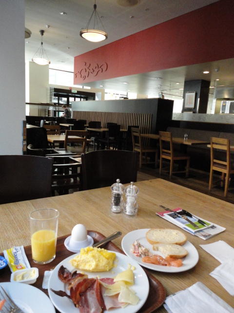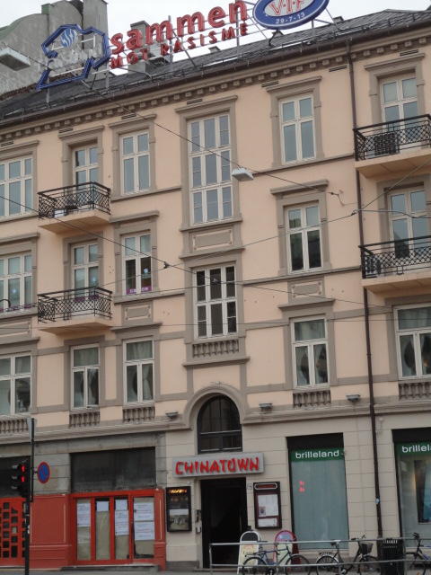 Paper Sessionが終わって、晩のコンサートセッションまで2時間のDinner Breakとなりました。 この日もいったん、ホテルに戻って荷物をパソコン等から身軽にして、 オスロ中央駅に行き(トラム2駅)、中央駅の地下には安いフードコートがある、 という「地球の歩き方」の情報を頼りに、チャイニーズレストランでの夕食です。 ここは豪華にレストランでしたが、チャイニーズデリ(多数並んでいる総菜から好きに盛り合わせてもらって量り売り)も世界中にあって、 いつも愛用しています。