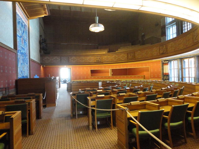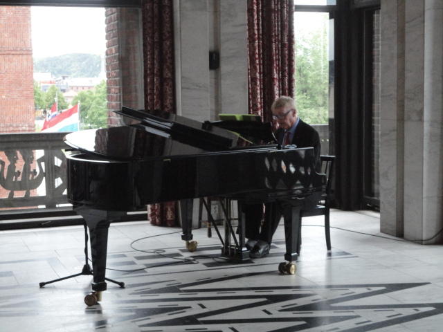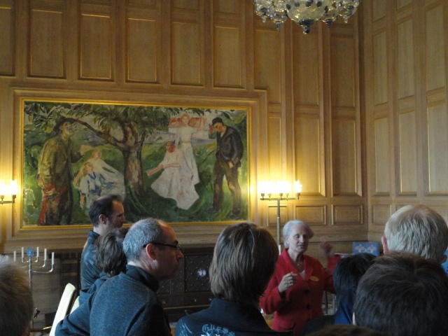歓迎レセプションの風景です。 オスロ市のスタッフが、それぞれの部屋の説明をするガイドツアーもありました。 その後に再びChateau Neufに戻って、自分のコンサート公演を含むクラブコンサートセッションがあるので、 皆んなよりちょっと早めに市庁舎を出ました。 メトロの駅まで歩かなくても、近くの12番のトラムでMajorstuenに行けることを既に熟知しているので、そちらを使いました。