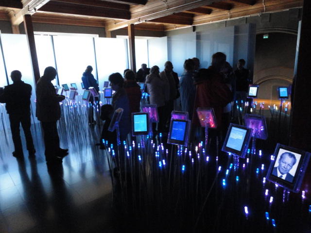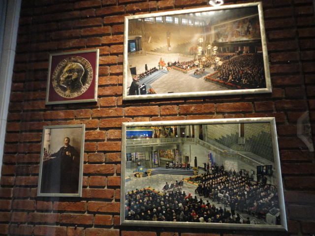 Aker Bryggeに面した、オスロ市庁舎とショッピングモールの間にあるのが「ノーベル平和センター」です。 ノーベル賞というのは6部門ありますが、「物理学賞」「化学賞」「経済学賞」「生理学・医学賞」「文学賞」の5つの授賞式はスウェーデンで行われるのに、「平和賞」だけはノルウェー・ノーベル委員会が選考して、ノルウェーが授与主体として授賞式をオスロ市庁舎で行うというものです。 2010年に行われた 劉暁波 氏の授与式は、中国政府の外交圧力により中国を含む19カ国が参加を拒否しましたが、 ここに来てみれば、人権と世界平和に逆行する中国の愚かさが痛切に判ります。 ・・・などと余韻を味わいつつワインで休憩しました。