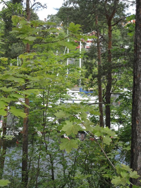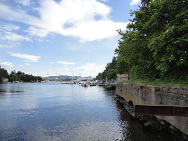 BYGDOY地区には5つの博物館があり、残りの2つはフィヨルドの反対側です。 バス(オスロカードで無料)が頻繁に行き来しているのでそれでも移動できるのですが、 この朝は清々しくて気持ちが良く、どうせ10分程度なので、歩くことにしました。 すると、フィヨルドの下(波打ち際)に降りていく路を発見、なかなかゴージャスな世界を 間近に見ることが出来ました(^_^)。