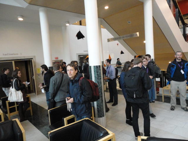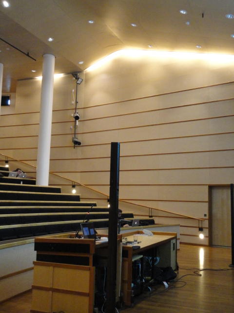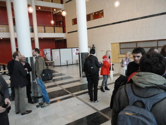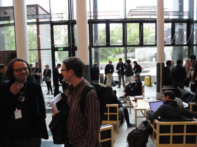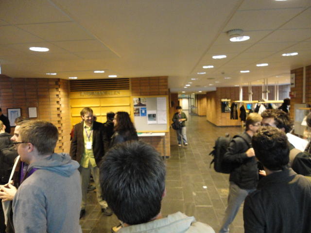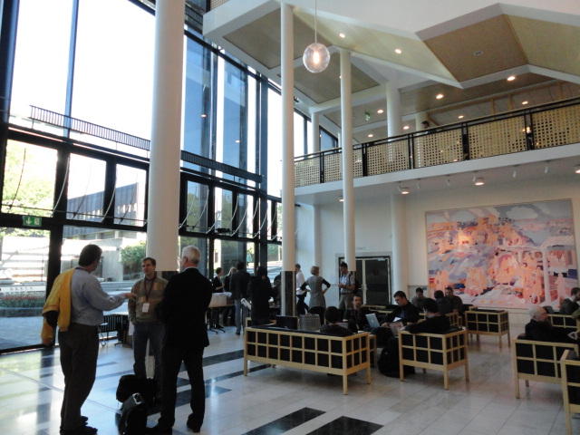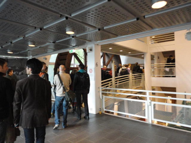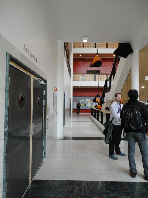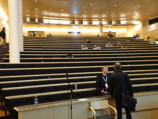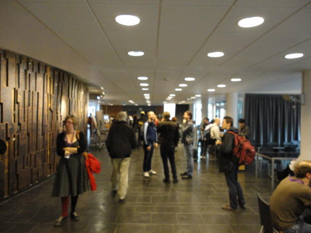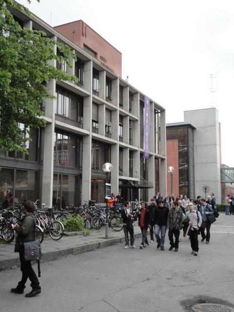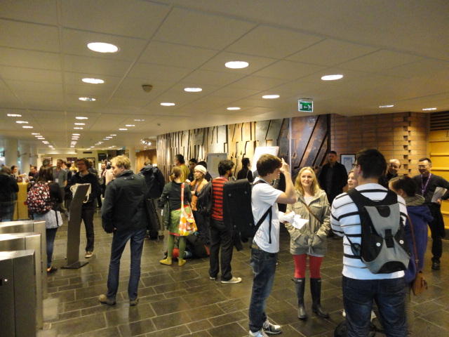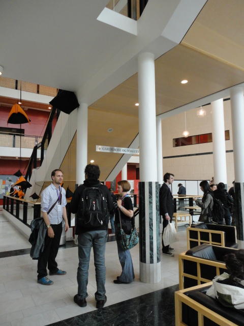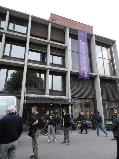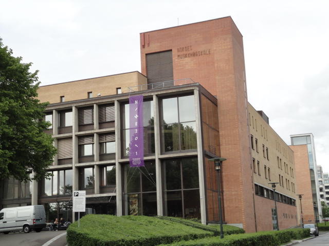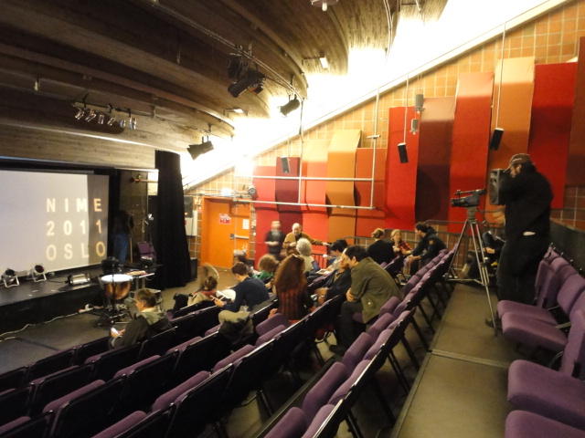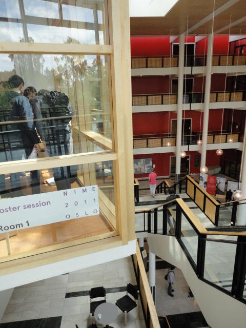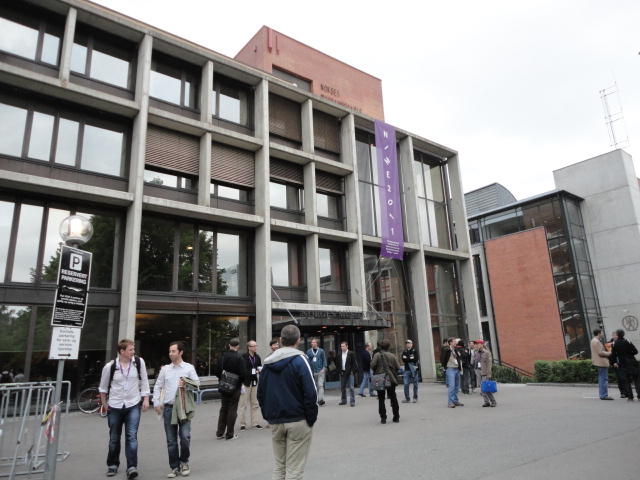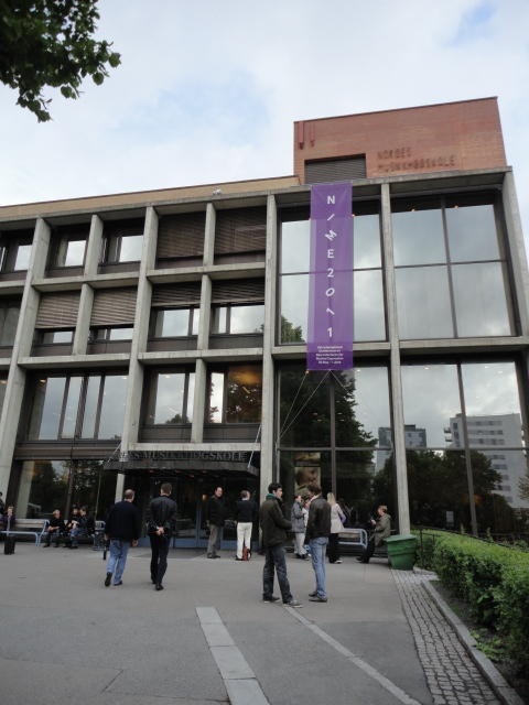 メトロでMajorstuen駅に行って徒歩数分、ノルウェー国立音楽アカデミー(Norwegian Academy of Music)に行きました。 この会場のホールは、NIME2011のコンサートセッションのうちHall Concertで使われます。 いよいよ正式なNIME2011のスタートということで、ここからの参加者、そしてプレNIMEの参加者が集まってきました。