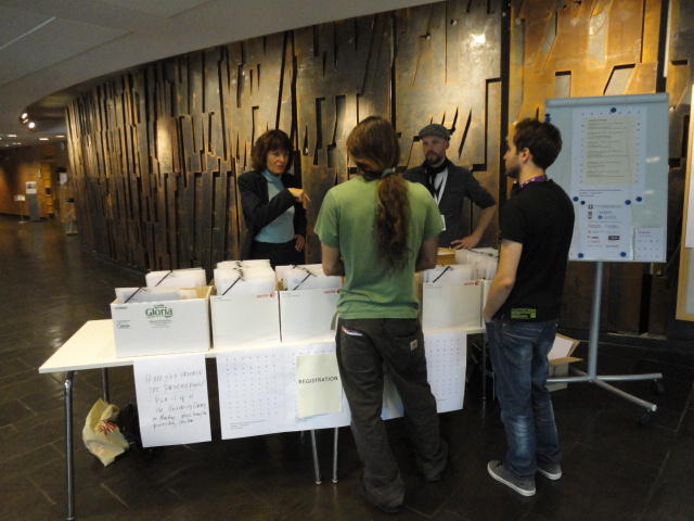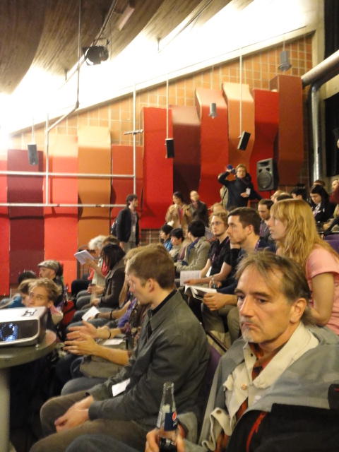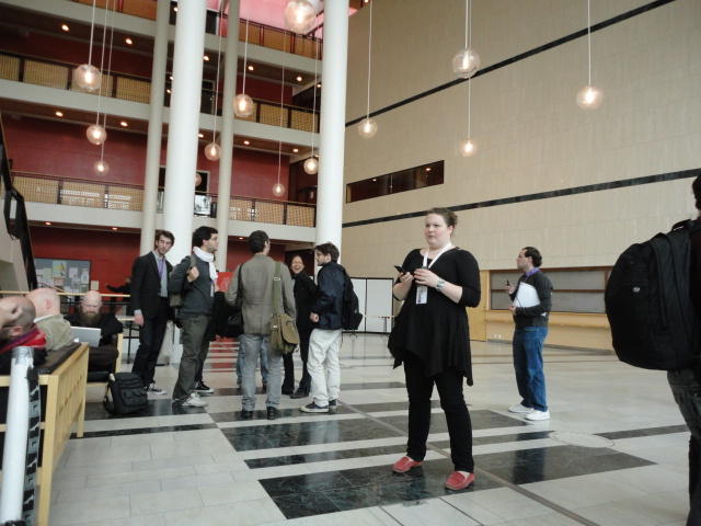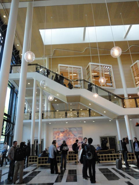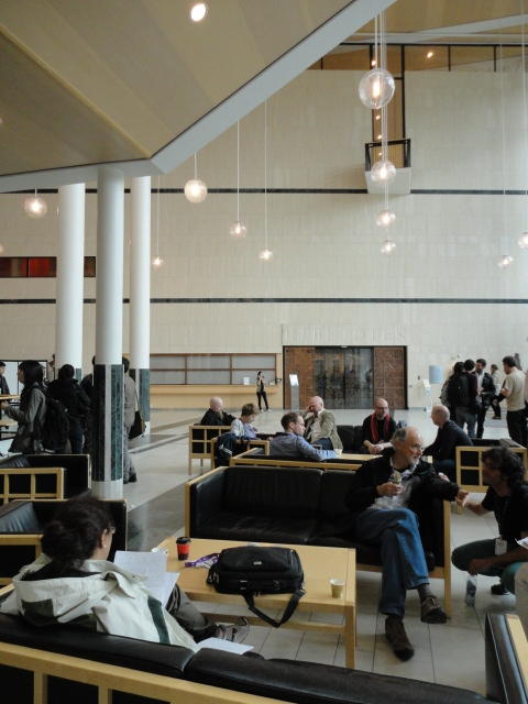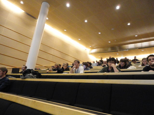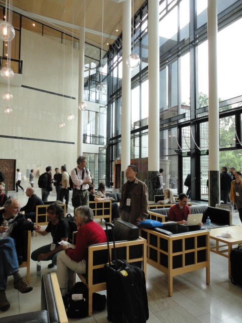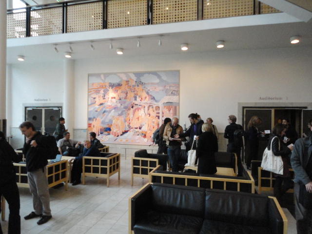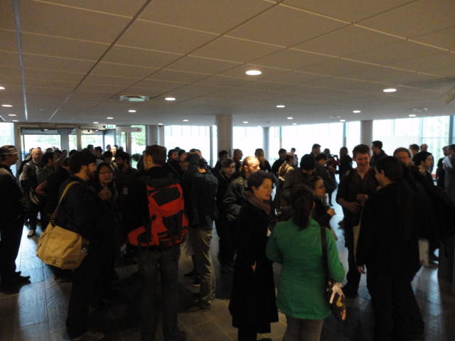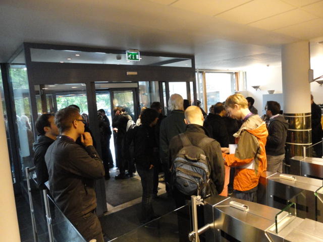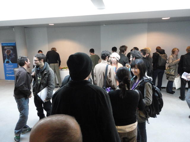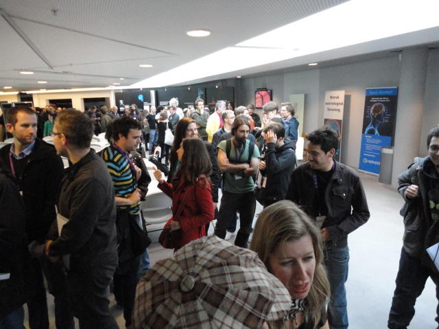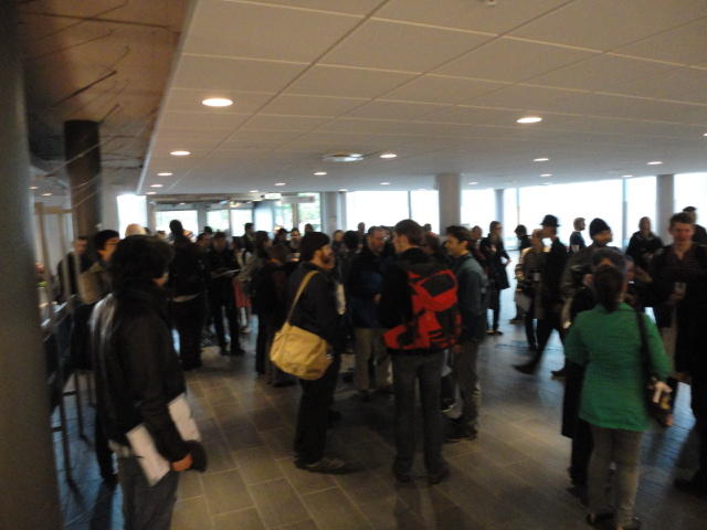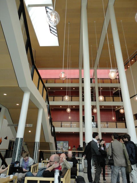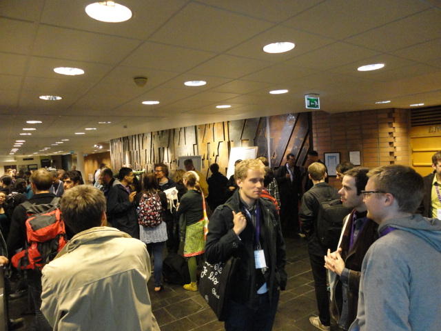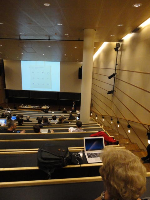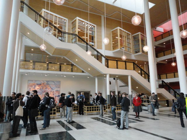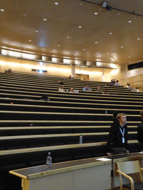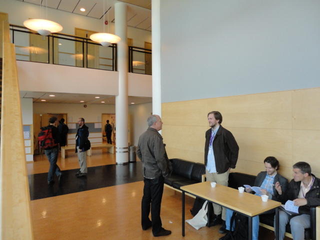 メトロでMajorstuen駅に行って徒歩数分、ノルウェー国立音楽アカデミー(Norwegian Academy of Music)に行きました。 この会場のホールは、NIME2011のコンサートセッションのうちHall Concertで使われます。 いよいよ正式なNIME2011のスタートということで、ここからの参加者、そしてプレNIMEの参加者が集まってきました。