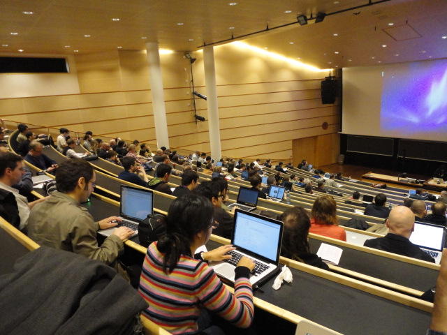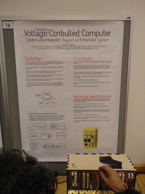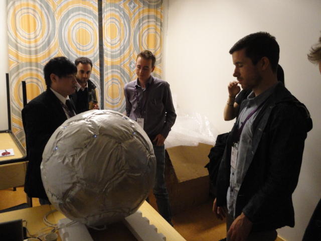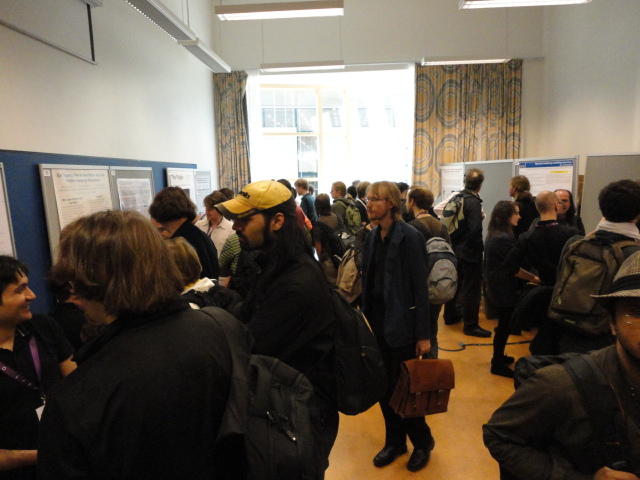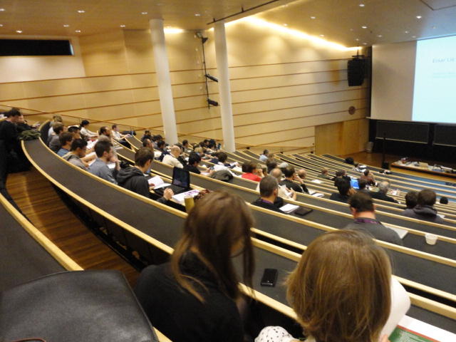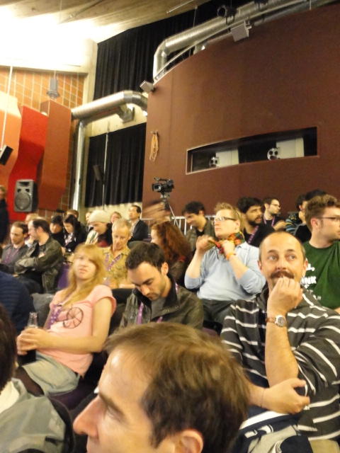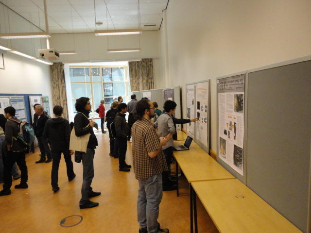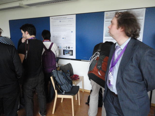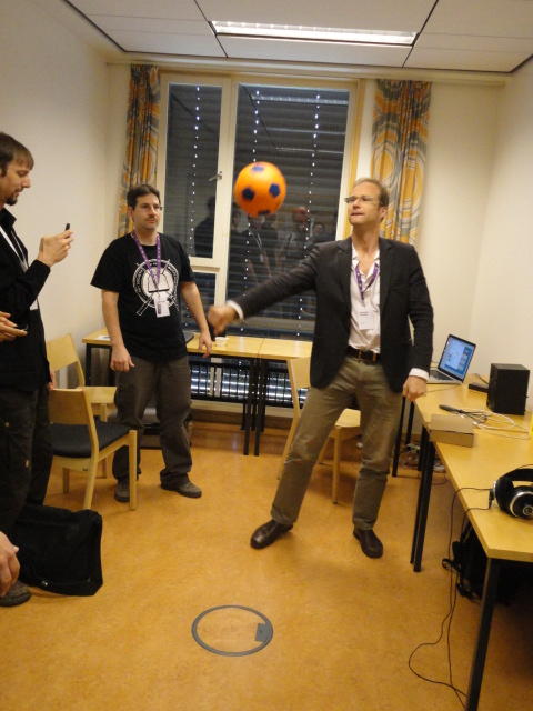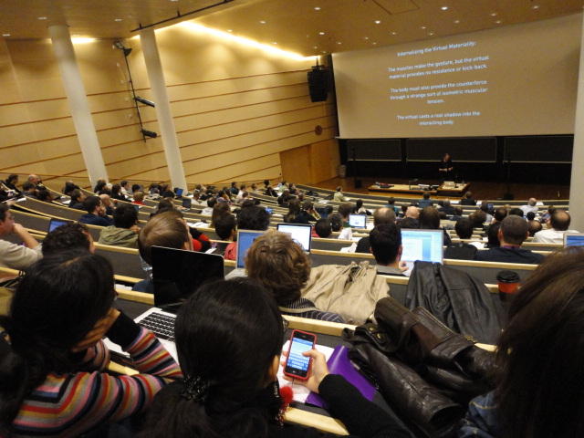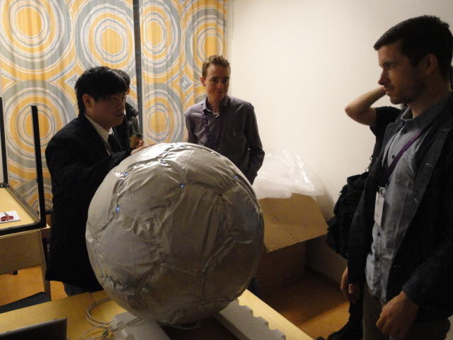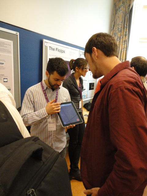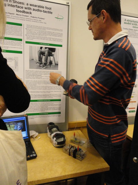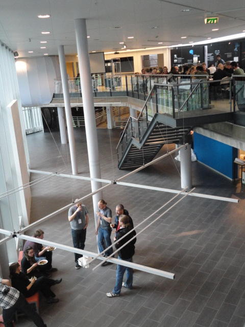 2日目午後の前半は、またPoster/Demoセッションです。 今回のNIMEは欧州開催ということで、ヨーロッパの多くの研究者の応募が集まり(500本以上)、 採択件数を多くするために、ポスターがこれまでにない規模に増えていました。Poster session G ― Tuesday 31 May 13:30-14:30 3rd floor, University Library Audio Arduino ― an ALSA (Advanced Linux Sound Architecture) audio driver for FTDI-based Arduinos Smilen Dimitrov and Stefania Serafin Musical control of a pipe based on acoustic resonance Seunghun Kim and Woon Seung Yeo Play Fluency in Music Improvisation Games for Novices Anne-Marie Hansen, Hans Jorgen Andersen and Pirkko Raudaskoski The Bass Sleeve: A Real-time Multimedia Gestural Controller for Augmented Electric Bass Performance Izzi Ramkissoon The KarmetiK NotomotoN: A New Breed of Musical Robot for Teaching and Performance Ajay Kapur, Michael Darling, James Murphy, Jordan Hochenbaum, Dimitri Di- akopoulos and Trimpin The Manipuller: Strings Manipulation and Multi-Dimensional Force Sensing Adrian Barenca Aliaga and Giuseppe Torre Mapping Objects with the Surface Editor Alain Crevoisier and Cecile Picard-Limpens Adding Z-Depth and Pressure Expressivity to Tangible Tabletop Surfaces Jordan Hochenbaum and Ajay Kapur Hex Player: A Virtual Musical Controller Andrew Milne, Anna Xambo, Robin Laney, David B. Sharp, Anthony Prechtl and Simon Holland Rhythm Performance from a Spectral Point of View Carl Haakon Waadeland Nuvolet : 3D gesture-driven collaborative audio mosaicing Josep M Comajuncosas, Enric Guaus, Alex Barrachina and John O'Connell Effective and expressive movements in a French-Canadian fiddler's perfor- mance Erwin Schoonderwaldt and Alexander Refsum Jensenius Flowspace: A Hybrid Ecosystem Daniel Bisig, Jan Schacher and Martin Neukom Implementing a Finite Difference-Based Real-time Sound Synthesizer using GPUs Marc Sosnick and William Hsu An Artificial Intelligence Architecture for Musical Expressiveness that Learns by Imitation Axel Tidemann TweetDreams: Making music with the audience and the world using real- time Twitter data Jorge Herrera, Carr Wilkerson and Luke Dahl JunctionBox: A Toolkit for Creating Multi-touch Sound Control Interfaces Lawrence Fyfe, Adam Tindale and Sheelagh Carpendale Beyond Evaluation: Linking Practice and Theory in New Musical Interface Design Andrew Johnston Intuitive Real-Time Control of Spectral Model Synthesis Phillip Popp and Matthew Wright BeatJockey: A new tool for enhancing DJ skills Pablo Molina, Martin Haro and Sergi Jorda` Traces: Body, Motion and Sound Jan Schacher and Angela Stoecklin MoodMixer: EEG-based Collaborative Sonification Grace Leslie and Tim Mullen OSC Implementation and Evaluation of the Xsens MVN suit Stale A. Skogstad, Kristian Nymoen, Yago De Quay and Alexander Refsum Jensenius The effect of visualizing audio targets in a musical listening and performance task Lonce Wyse, Norikazu Mitani and Suranga Nanayakkara Composability for Musical Gesture Signal Processing using new OSC-based Object and Functional Programming Extensions to Max/MSP Freed Adrian, John Maccallum and Andrew Schmeder SoundSaber ― A Motion Capture Instrument Kristian Nymoen, Stale A. Skogstad and Alexander Refsum Jensenius A modulation matrix for complex parameter sets Oyvind Brandtsegg, Sigurd Saue and Thom Johansen Demo session H ― Tuesday 31 May 13:30-14:30 3rd floor, University Library Sound Low Fun Yu-Chung Tseng, Che-Wei Liu, Tzu-Heng Chi and Hui-Yu Wang Autonomous New Media Artefacts (AutoNMA) Edgar Berdahl and Chris Chafe Creating Musical Expression using Kinect Min-Joon Yoo, Jin-Wook Beak and In-Kwon Lee Making grains tangible: microtouch for microsound Staas De Jong Sound Selection by Gestures Baptiste Caramiaux, Frederic Bevilacqua and Norbert Schnell★ ★ ★ ★ ★ ★ ★ ★ ★ ★ ★ ★ ★ ★ ★ ★Paper Session (3)