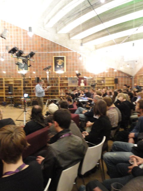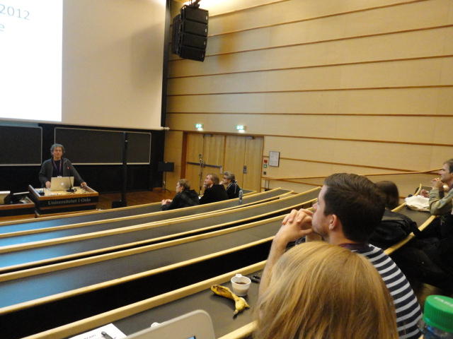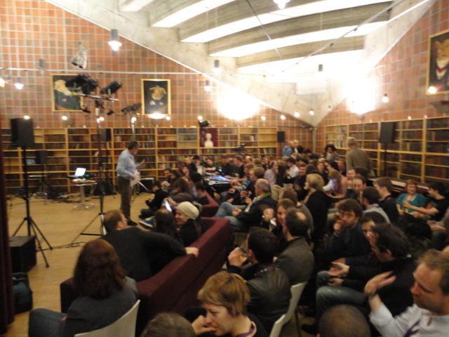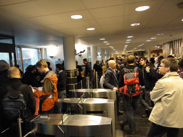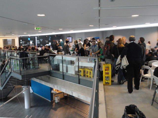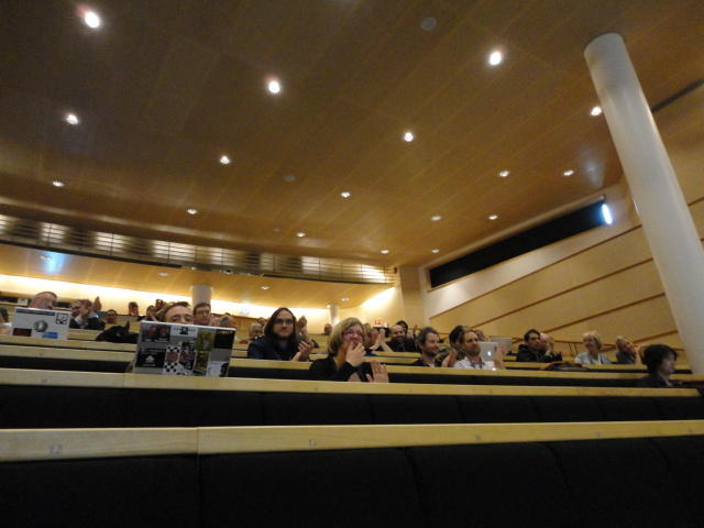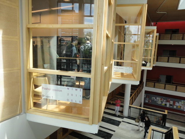 2日目のNIMEコンサートセッションの後半、クラブコンサートです。 前日は狭い会場に満杯で、ロビーまで同時中継していましたが、 この日は構成を変更しました。 つまり2階の2会場での公演は2度行い、来場者はゾロゾロとそれぞれのホールを移動しました。 また、地下の会場での公演は広いので、立ち見を含めて1回公演となりました。 3Dメガネをかけた5人しか一度に鑑賞できない作品は、5分ごとに5人ずつ12回(計1時間)行う、 ということで、運良く最初のグループで鑑賞できたので、そこから最後の作品まで1時間待つのは辛いので、 ここで退散しましたが22:30でした。Club Concert ― Tuesday 31 May, 21:00-23:00 Chateau Neuf E=MCH Paul Stapleton, Caroline Pugh, Adnan Marquez-Borbon and Cavan Fyans (Venue: Lillesalen) REMI Sings Christopher Alden (Venue: Biblioteket) Suspended Beginnings Diemo Schwarz and Victoria Johnson (Venue: Biblioteket) The Loop Jason Dixon, Tom Davis, Jason Geistweidt and Alain B. Renaud (Venue: Klubb- scenen) Dissonance Victor Zappi and Dario Mazzanti (Venue: Betong) The Shells Alex Nowitz (Venue: Biblioteket) BiLE (Birmingham Laptop Ensemble) Julien Guillamat, Charles Celeste Hutchins, Shelly Knotts, Norah Lorway, Jorge Garcia Moncada, Chris Tarren (Venue: Lillesalen) Where Art Thou?: Dance Jockey Yago de Quay and Stale Skogstad (Venue: Biblioteket) Sonolume Domenico Sciajno (Venue: Lillesalen)★ ★ ★ ★ ★ ★ ★ ★ ★ ★ ★ ★ ★ ★ ★ ★ ★ ★ ★ ★ ★ ★ ★ ★ ★ ★ ★ ★ ★ ★ ★ ★ ★ ★ ★ ★ ★ ★ ★ ★ ★ ★ ★ ★ ★ ★ ★ ★ ★ ★ ★ ★ ★ ★ ★ ★ ★ ★ ★ ★ ★ ★ ★ ★ ★ ★ ★ ★ ★ ★ ★ ★ ★ ★ ★ ★ ★ ★ ★ ★ ★ ★ ★ ★ ★ ★ ★ ★ ★ ★6/1 オスロ大学(図書館)へ