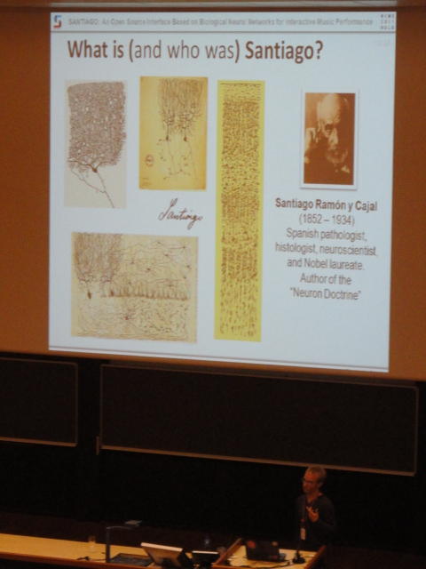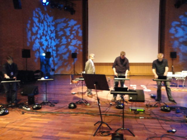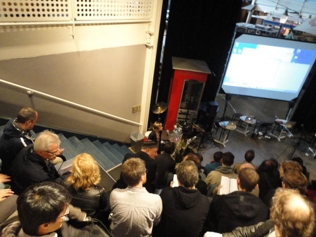 NIMEコンサートセッション(審査採択作品)の、ホールでのコンサートです。 写真が少ないのは、公演中はビデオを撮っていたためです。 このコンサートの時には、世界のComputer Music研究を引っ張り続けるスーパースター、 Roger Dannenberg教授が隣に座ってきて、国際会議ISMIRのコンサートセッションの審査員をして欲しい、 と依頼されました(*^o^*)。もちろん快諾。Concert ― Tuesday 31 May, 19:00-20:30 Lindemansalen, Norwegian Academy of Music Body Jockey Sarah Taylor, Maurizio Goina and Pietro Polotti Improvisation for piano + motion capture system Sarah Nicolls and Nick Gillian Socks and Ammo Mustek-LaurenSarahHayesandChristosMichalakos SoundGrasp Thomas Mitchell and Imogen Heap TURN ME! I need 12 Volts! Kristin Norderval★ ★ ★ ★ ★ ★ ★ ★ ★ ★ ★ ★ ★ ★ ★ ★ ★ ★ ★ ★ ★ ★ ★ ★Concert Session (3) Club Concert