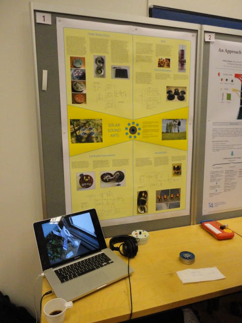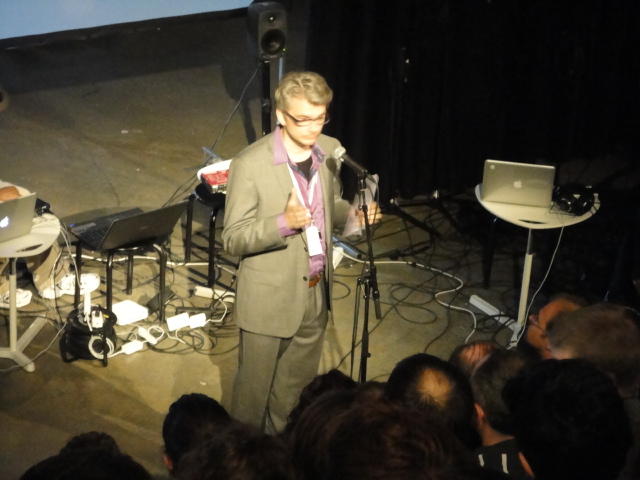 午後のセッションの前半は、Poster/Demoセッションです。Poster session B ― Monday 30 May 13:30-14:30 3rd floor, University Library Solar Sound Arts: Creating Instruments and Devices Powered by Photo- voltaic Technologies Scott Smallwood An Approach to Collaborative Music Composition NiklasKlugel,MarcReneFriesandGeorgGroh A Reference Architecture and Score Representation for Popular Music Human- Computer Music Performance Systems Nicolas Gold and Roger Dannenberg V’OCT (Ritual): An Interactive Vocal Work for Bodycoder System and 8 Channel Spatialization Mark Bokowiec First Person Shooters as Collaborative Multiprocess Instruments Florent Berthaut, Haruhiro Katayose, Hironori Wakama, Naoyuki Totani and Yuichi Sato Studying Interdependencies in Music Performance: An Interactive Tool Tilo Hahnel and Axel Berndt 1city 1001vibrations: development of a interactive sound installation with robotic instrument performance Sinan Bokesoy and Patrick Adler The medium is the message: Composing instruments and performing map- pings Tim Murray-Browne, Di Mainstone, Nick Bryan-Kinns and Mark D. Plumbley Clothesline as a Metaphor for a Musical Interface Seunghun Kim, Luke Keunhyung Kim, Songhee Jeong and Woon Seung Yeo EGGS in action Pietro Polotti and Maurizio Goina A Reverberation Instrument Based on Perceptual Mapping Berit Janssen Feedback-Assisted Performance Lauren Hayes Improving User-Interface of Interactive EC for Composition-Aid by means of Shopping Basket Procedure Daichi Ando BioRhythm: a Biologically-inspired Audio-Visual Installation Ryan Mcgee, Yuan-Yi Fan and Reza Ali Vibration, Volts and Sonic Art: A practice and theory of electromechanical sound Jon Pigott Automatic Rhythmic Performance in Max/MSP: the kin.rhythmicator George Sioros and Carlos Guedes Towards a Voltage-Controlled Computer ― Control and Interaction Beyond an Embedded System Andre Goncalves Polyhymnia: An automatic piano performance system with statistical mod- eling of polyphonic expression and musical symbol interpretation Tae Hun Kim, Satoru Fukayama, Takuya Nishimoto and Shigeki Sagayama Multitouch Interface for Audio Mixing Juan Pablo Carrascal and Sergi Jorda Cognitive Architecture in Mobile Music Interactions Nate Derbinsky and Georg Essl The Self-Supervising Machine Benjamin D. Smith and Guy E. Garnett Beatscape, a mixed virtual-physical environment for musical ensembles Aaron Albin, Sertan Senturk, Akito Van Troyer, Brian Blosser, Oliver Jan and Gil Weinberg Experiences from video-controlled sound installations Anders Friberg and Anna Kallblad A Physically Based Sound Space for Procedural Agents Benjamin Schroeder, Marc Ainger and Richard Parent MoodifierLive: Interactive and collaborative expressive music performance on mobile devices Marco Fabiani, Gael Dubus and Roberto Bresin Demo session C ― Monday 30 May 13:30-14:30 3rd floor, University Library Kinetic Particles Synthesizer Using Multi-Touch Screen Interface of Mobile Devices Yasuo Kuhara and Daiki Kobayashi The Sound Flinger: A Haptic Spatializer Christopher Carlson, Eli Marschner and Hunter Mccurry Daft Datum: an Interface for Producing Music Through Foot-Based Interac- tion Ravi Kondapalli and Benzhen Sung Strike on Stage: a percussion and media performance Charles Martin and Chi-Hsia Lai★ ★ ★ ★ ★ ★ ★ ★ ★ ★ ★ ★ ★ ★ ★ ★ ★ ★ ★ ★ ★ ★ ★ ★ ★ ★ ★ ★ ★ ★ ★ ★ ★ ★ ★ ★ ★ ★ ★ ★ ★ ★ ★Paper Session (2)