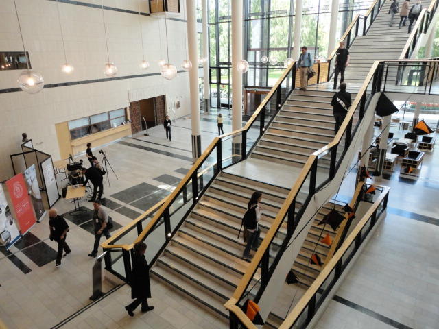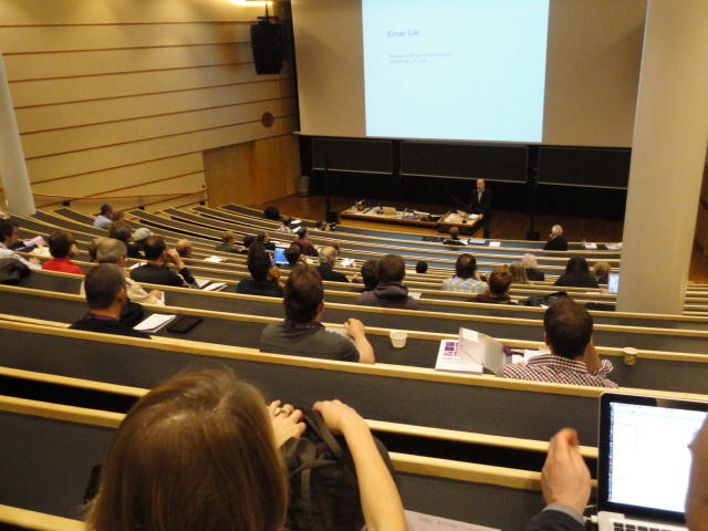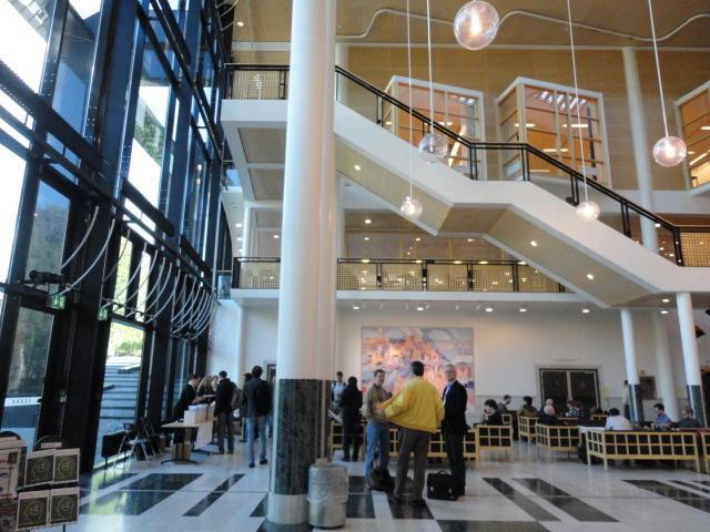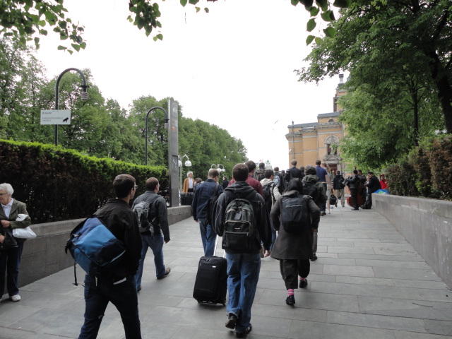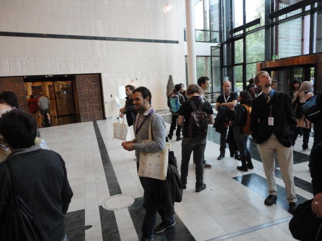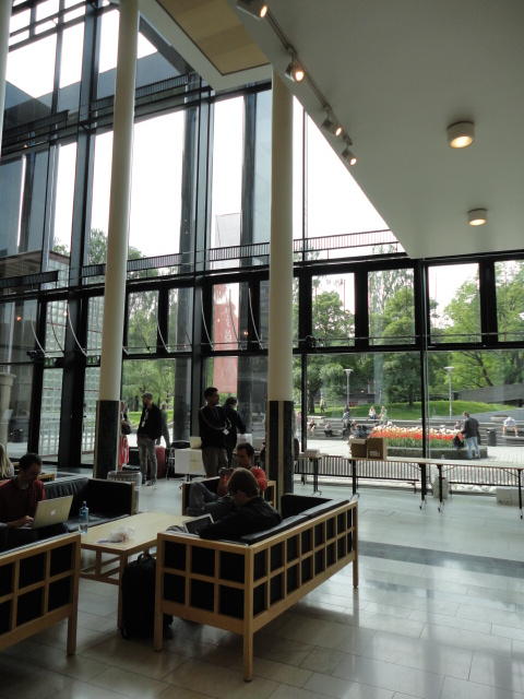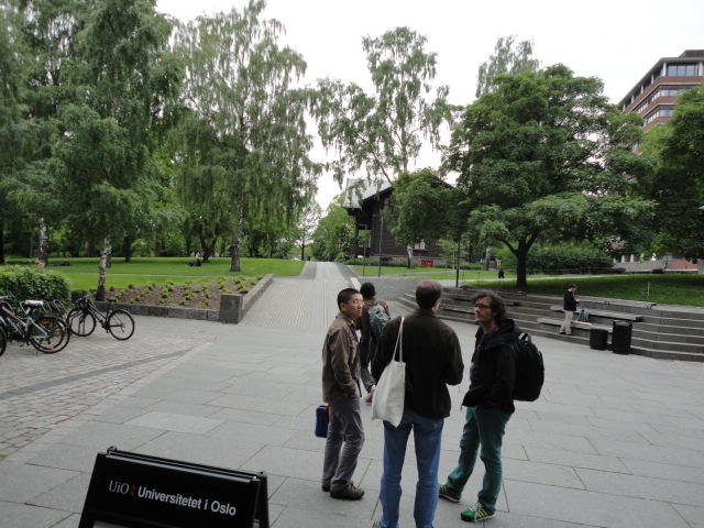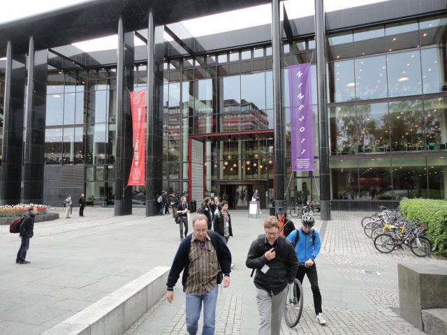 いよいよ好天の月曜日となりました。 この日は晩のコンサートでの公演があるので、センサーなど機材一式まで持参するので、いい天気で助かりました。 まずはOpening Sessionのため、メトロに乗って、メイン会場であるオスロ大学キャンパス(図書館)に向かいました。