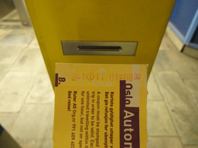 いよいよNIME2011の最終日の朝となりました。 またまた好天ということで、ホテルからオスロ大学(図書館)までの道のりを撮りました。 回数券は8枚綴りで200NOK(3000円)、これをメトロ駅の素通しの改札口にある機械に入れて日時を刻印します。 自由に乗るだけのトラムやバスなら車内に刻印機があります。 駅の出口や降車時には何もありません。 つまりこれはドイツやオランダやオーストリアと同じ方式であり、その気になれば「タダ乗り自由」(^_^;)です。 ただし、たまーーーに検札が来た時に切符を持っていないと、罰金は750NOK(1万円以上)という事です。 見回していると、どうも市民とかでタダ乗りしている人は少なくないのですが、これも高福祉国家ということなのかなぁ。