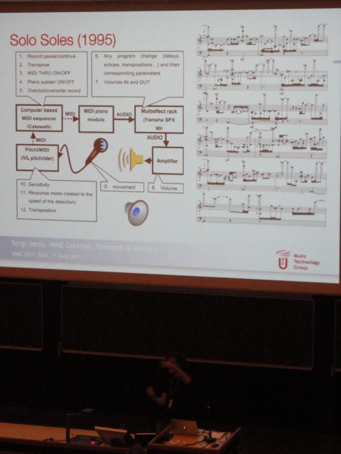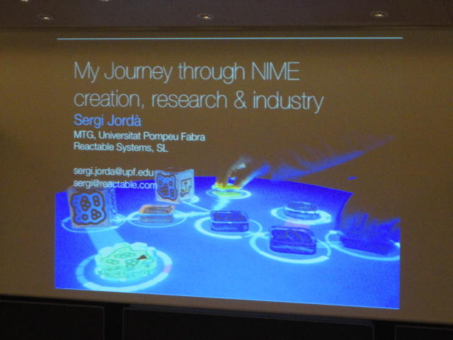 3日目の午後の最後は、Sergi Jorda氏のKeynoteです。 いろいろやって来た、という圧巻の内容でした。 ここ最近の仕事としてはReacTable が注目されています。 iPhone/iPadアプリ版もあるし、本体も販売しているので、興味のある人は買ってみて下さい。 1セットでたったの9700ユーロです。(^_^;)Keynote Lecture 3 ― Wednesday 1 June 14:30-15:30 Auditorium 1, University Library Digital Lutherie and Multithreaded Musical Performance: Artistic, Scientific and Commercial Perspectives Sergi Jorda★ ★ ★ ★ ★ ★ ★ ★ ★ ★ ★ ★ ★ ★ ★ ★ ★ ★ ★ ★ ★ ★NIME General Discussion