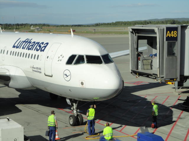 ホテルに戻ってスーツケースを受取り、トラムで中央駅に向かっていたところ、 突然にトラムが故障して(^_^;)、「全員降りろ」ということになり、 1駅区間、ごろごろと押していきましたが、時間に余裕があったので問題ありませんでした。 Flytogetでオスロ空港へ行き、朝から読んでいなかったので、最後のメイルチェックをしました。 ミュンヘンまでのルフトハンザ機内で既にワイン2杯です(^_^;)。