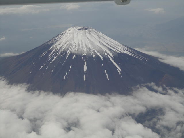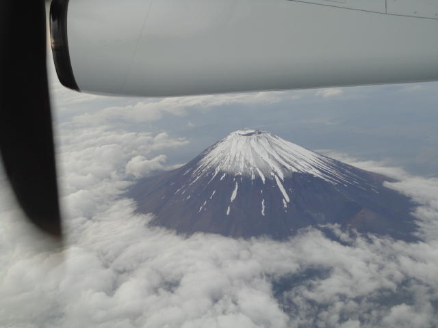 成田からセントレアへのフライトは、久しぶりにボンバルディアのプロペラ機でした。 時間はジェットよりもかかるのですが、高度が低いので、雲がなければ地表が良く見えます。 欧州ツアー2007 の時には、眼下に SUAC を確認できました。 そして今回は、なんと眼下に奇麗な富士山が見えて、きちんと撮れました(^_^)。