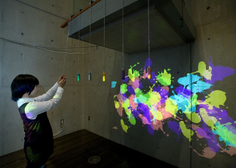 Six knobs hang with the chain in front of the screen. The paint of light drips, drops in the screen when people pulls the chain, and various light mixes. One is "The color is erased" straightening.