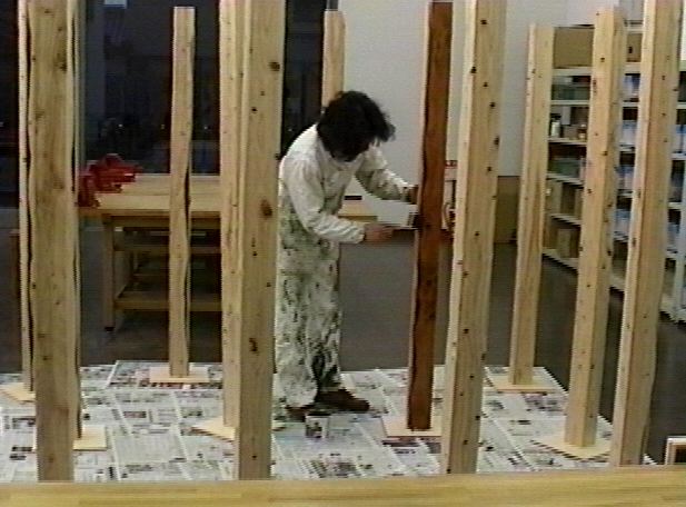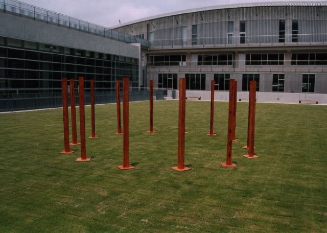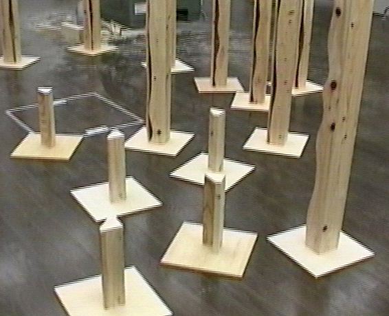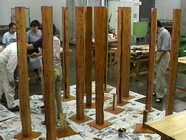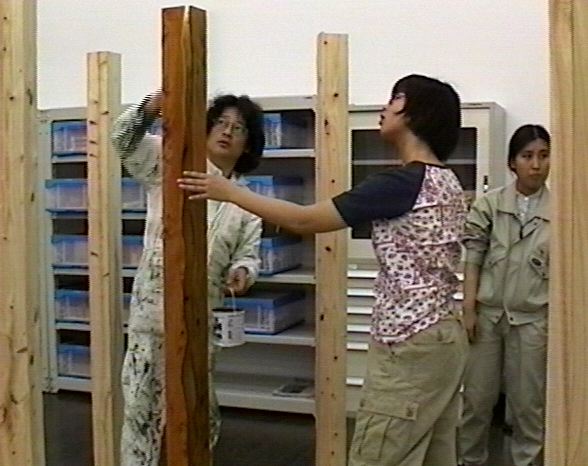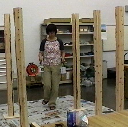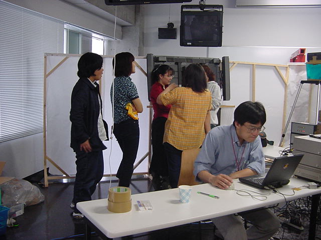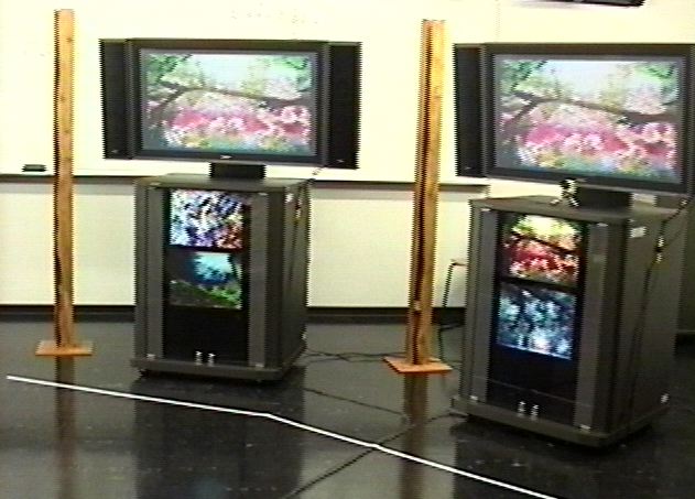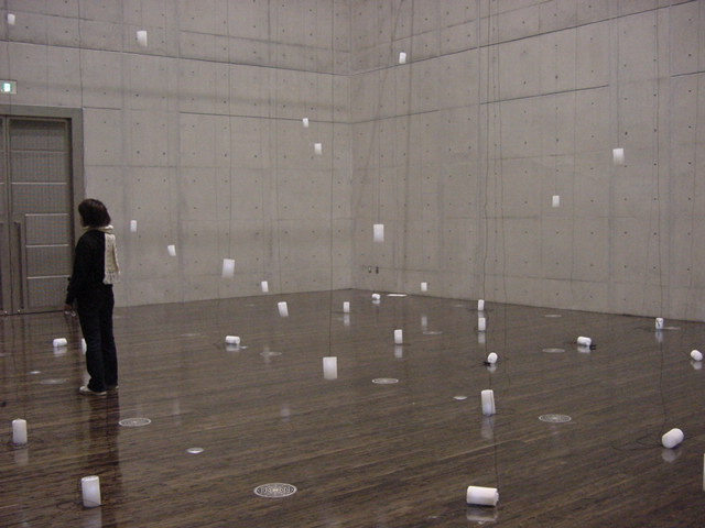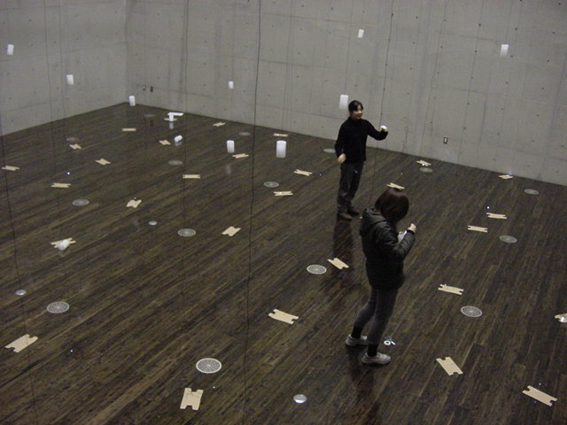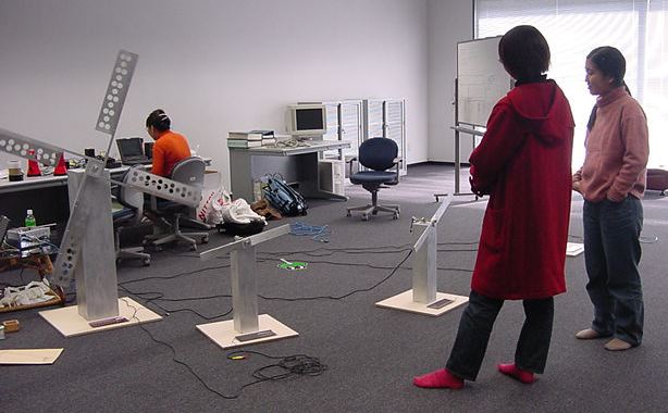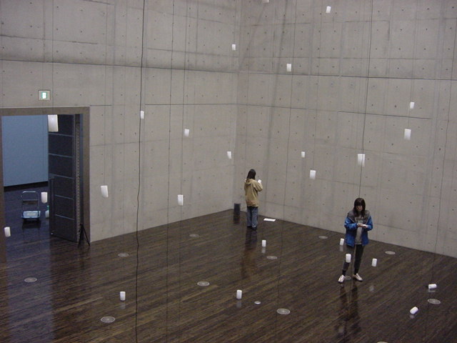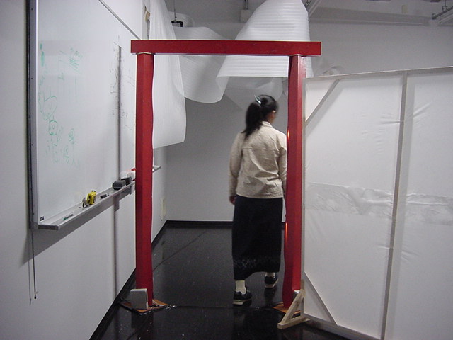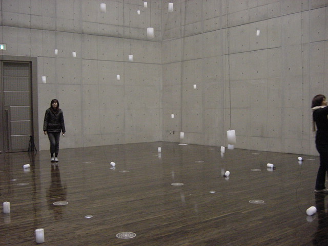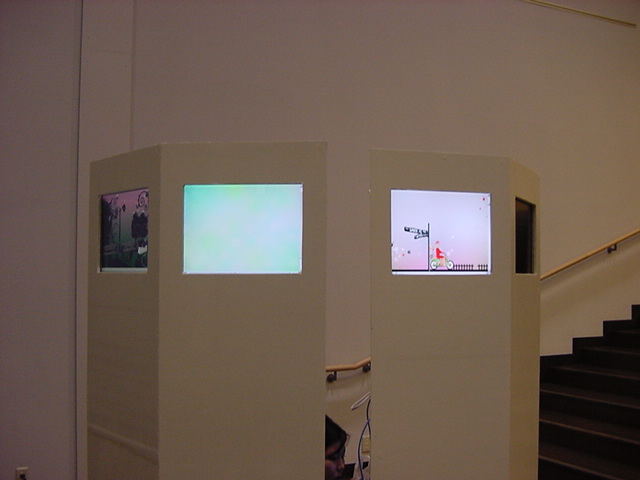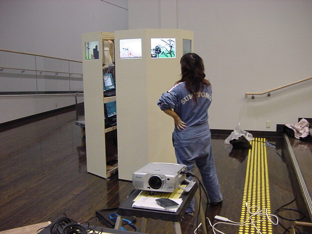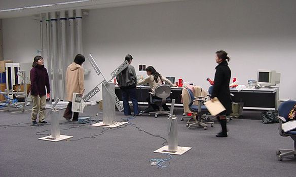 8 plasma monitors and 14 pillars compose "Passage". Some sounds are generated and some images change when people passes this passage.