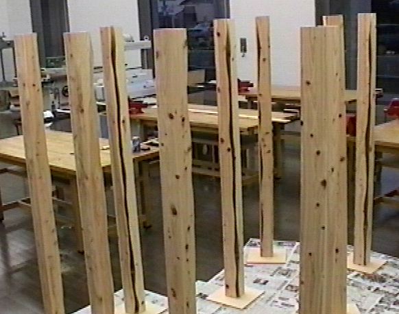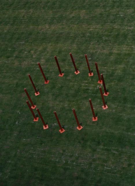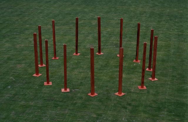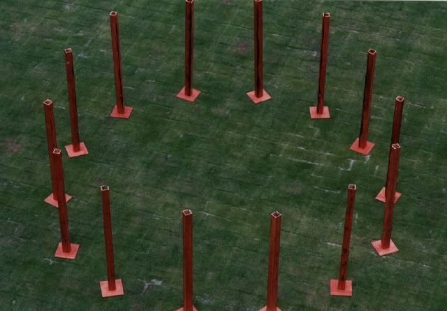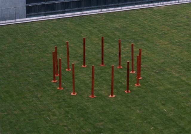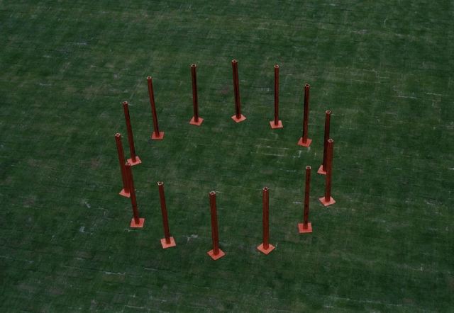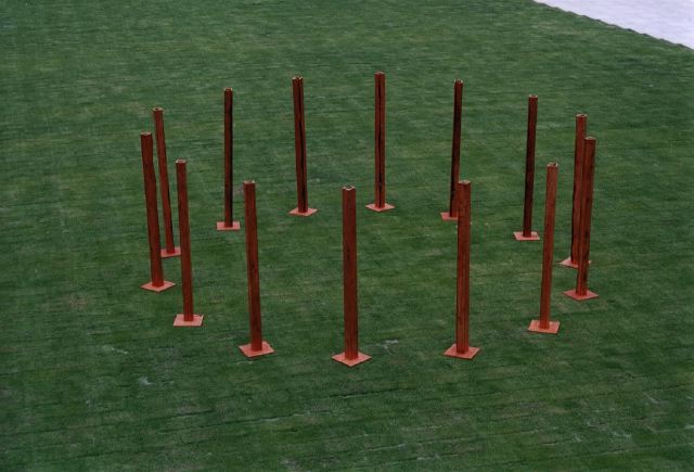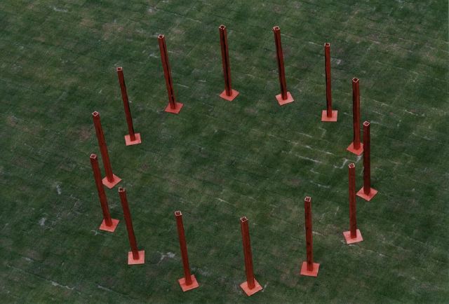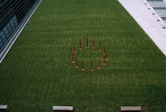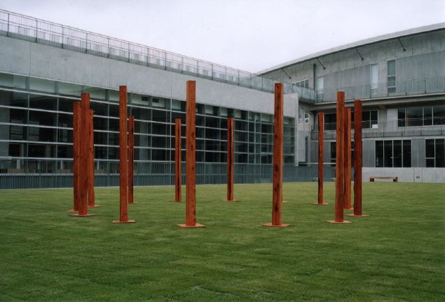 Sound installation of forming eight square pillars with round display in center. The display is a touch panel, and people can enjoy the image and the sound that changes variously with touching.