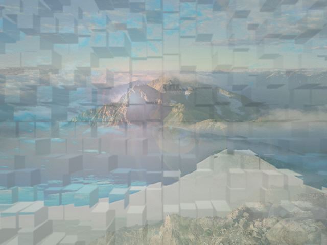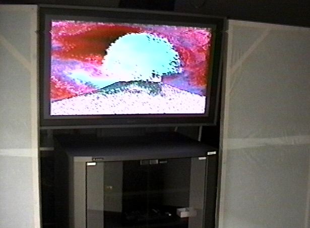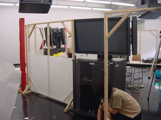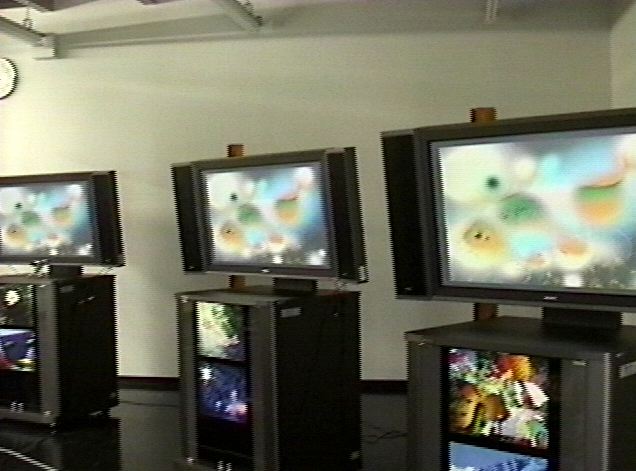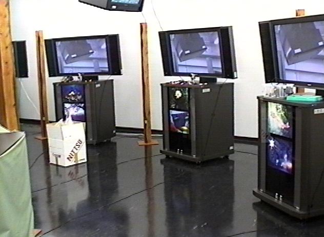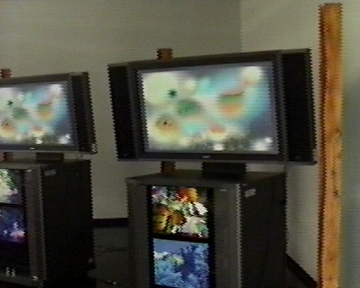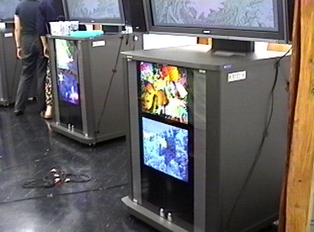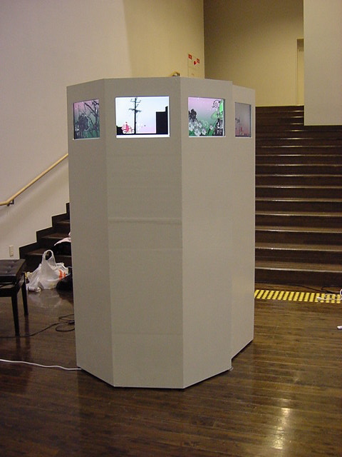 It is display object with eight screens. A round displays a consecutive image each frame synchronously by eight PC with which the network is connected.