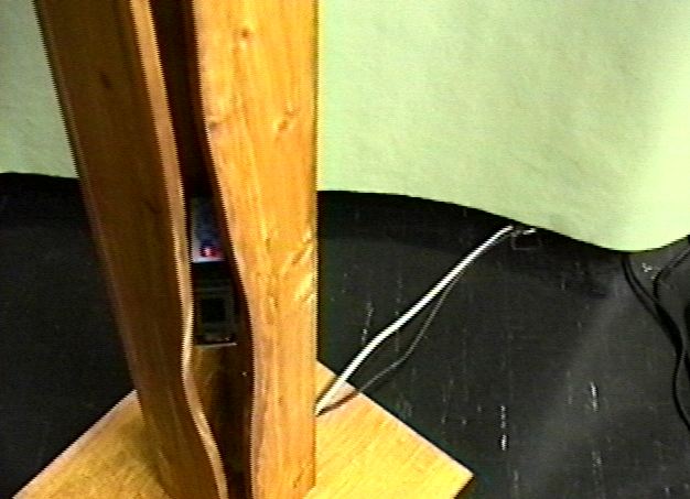 Microphone has adhered to a movable pipe of the stand. When people speaks, the image that reacted to the voice can be described on the screen in the part where the pipe was turned.