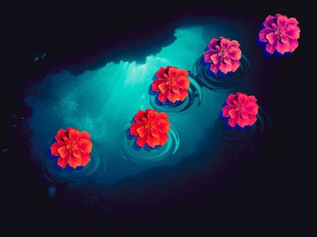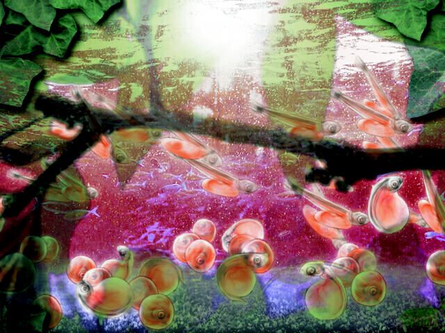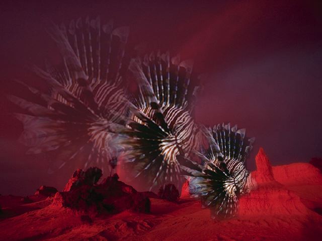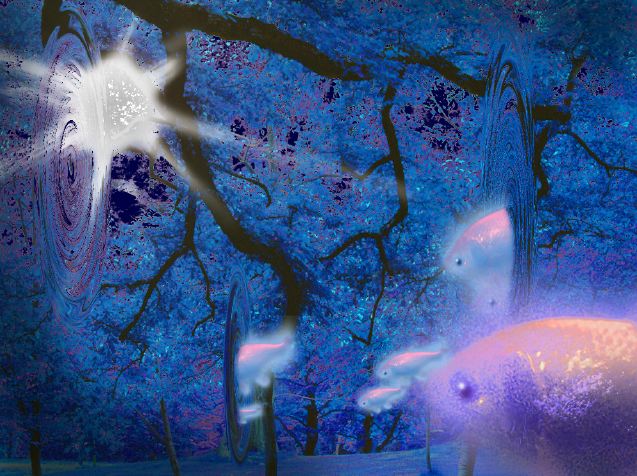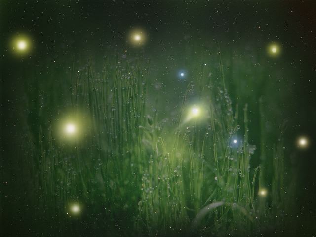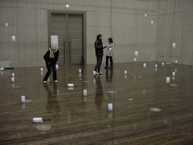 in a huge well. Each illuminant glitters and changes as lives according to the improvisational performance
