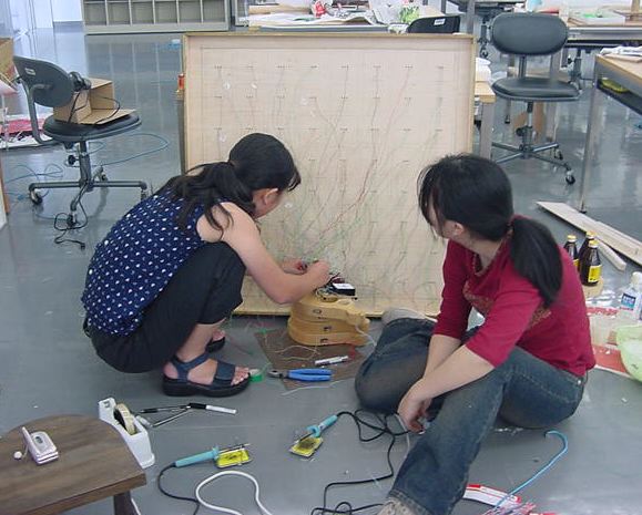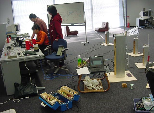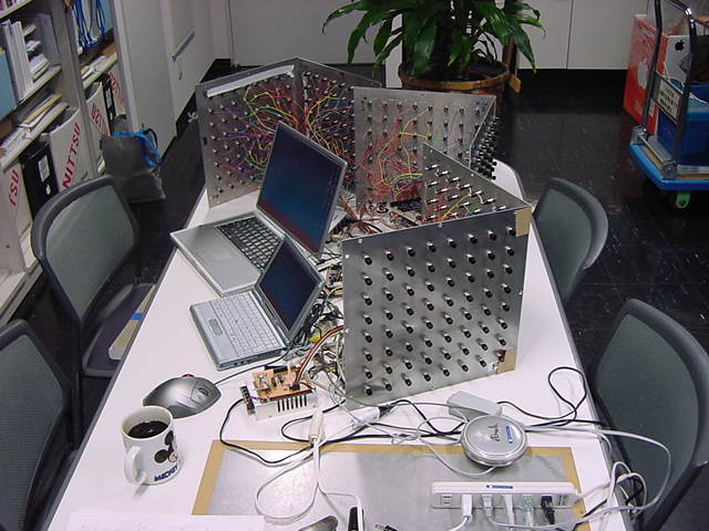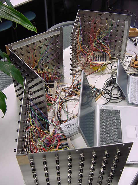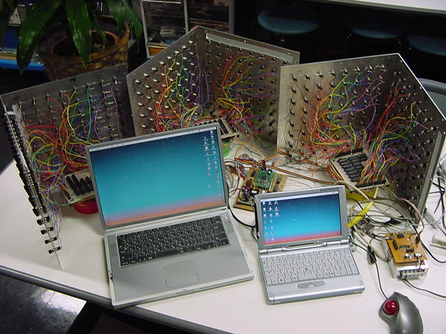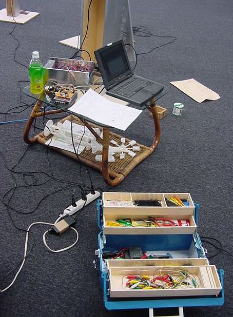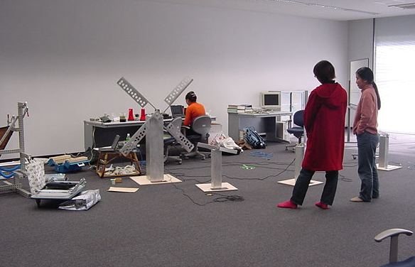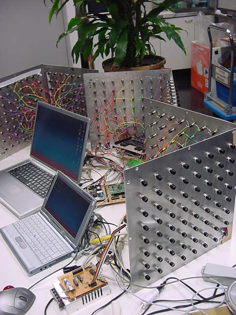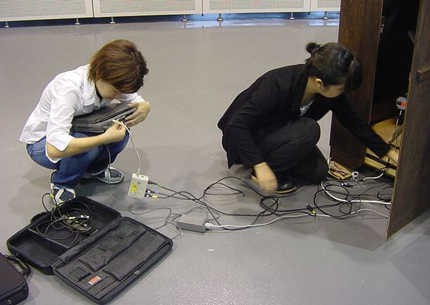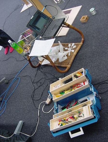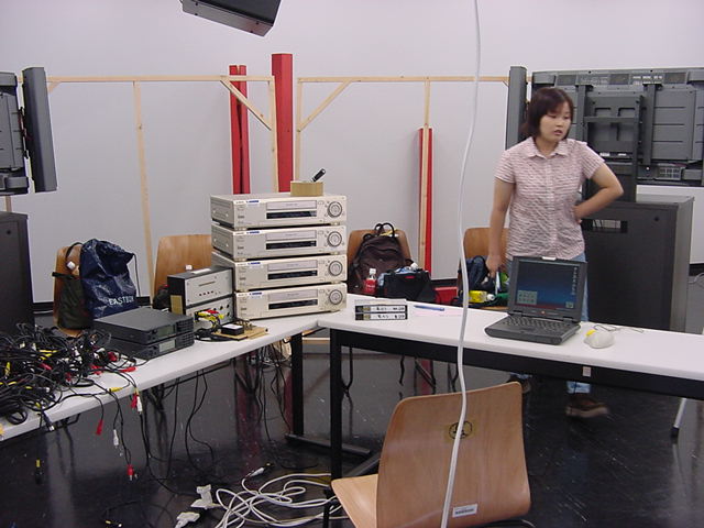 Infrared sensors, Max/MSP, touch sensors, CCD cameras, and Video Switcher