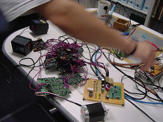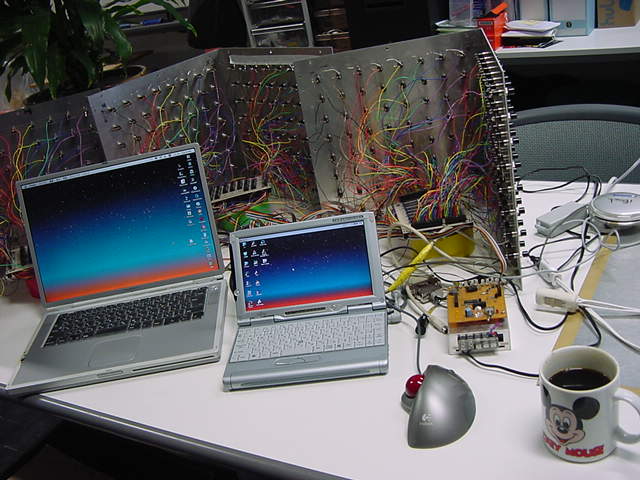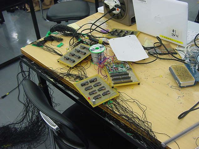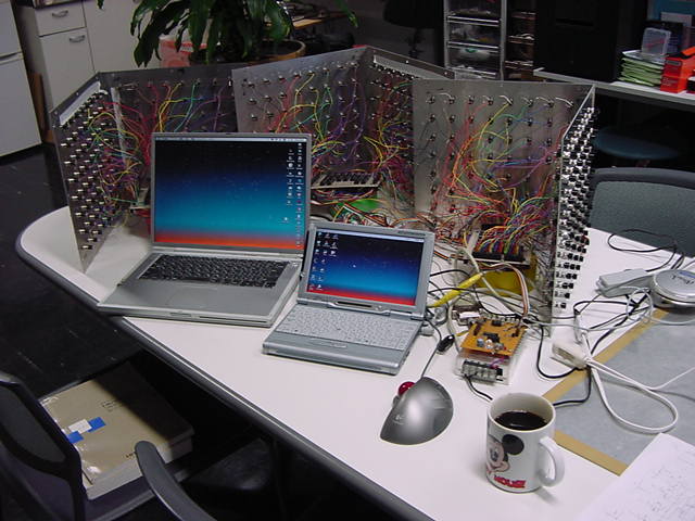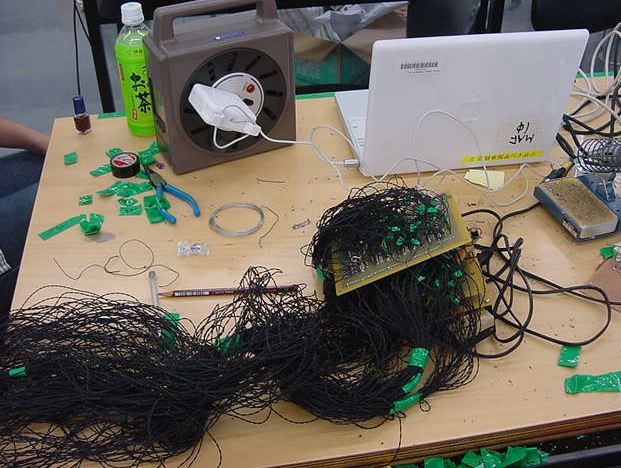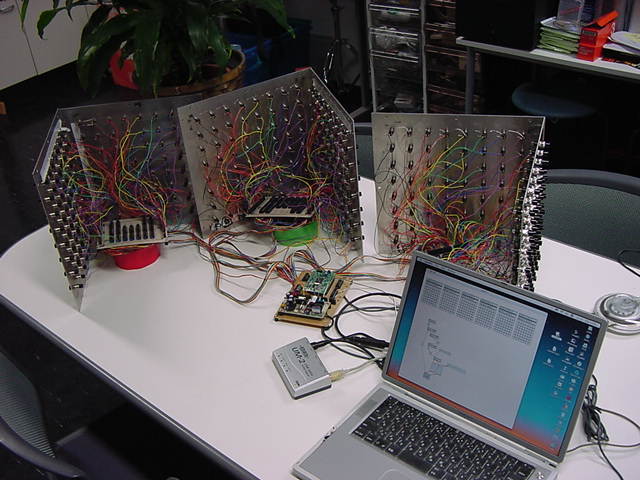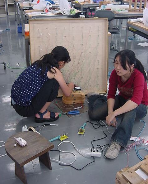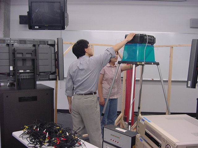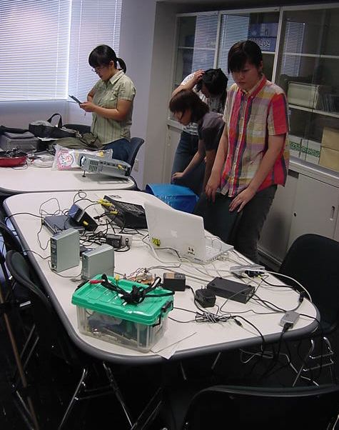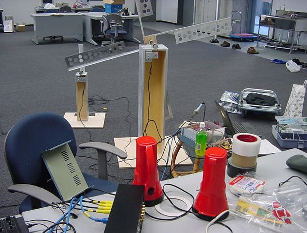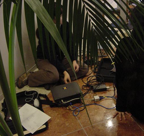 Infrared sensors, Max/MSP, touch sensors, CCD cameras, and Video Switcher