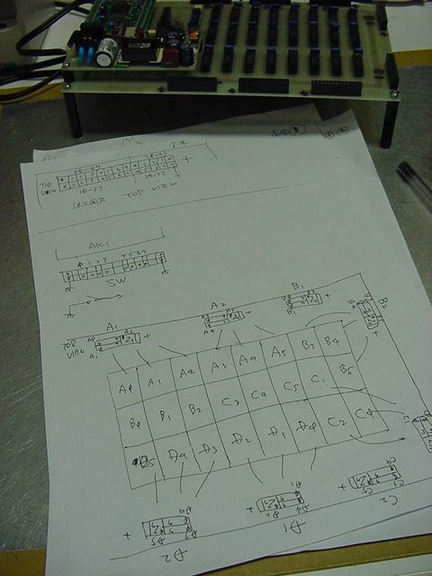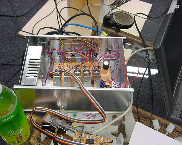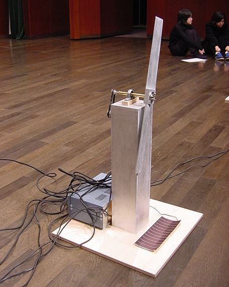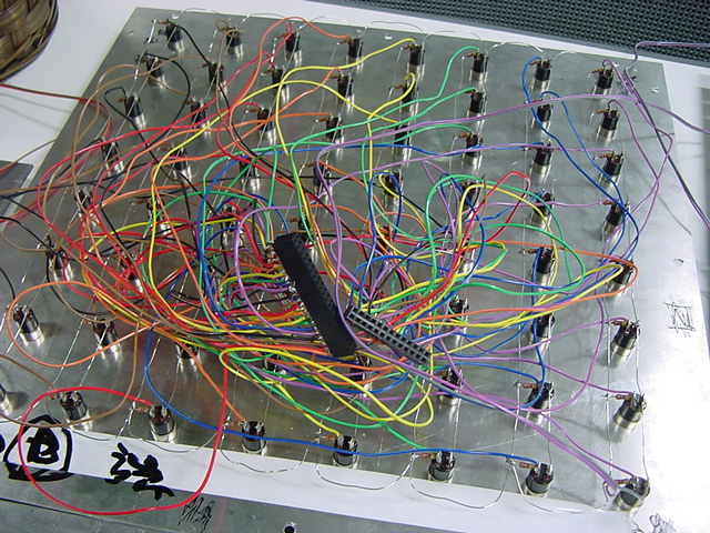 There are 256 Jack in a spiral tower of the plastron, and this is an axis at time (timing) and an axis of the percussion instrument type. It is a drum machine of the experience type that the percussion instrument rings by the beat when people puts in the plug in an arbitrary place.