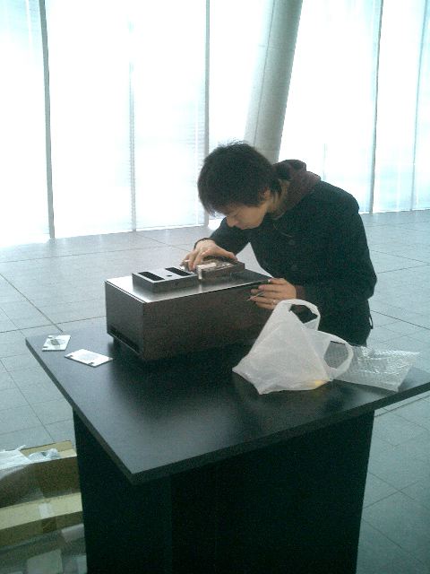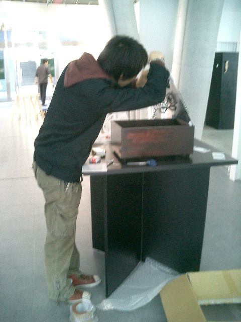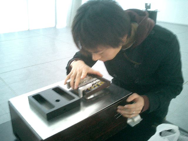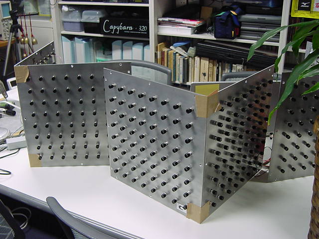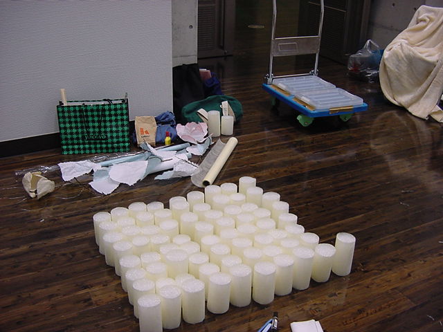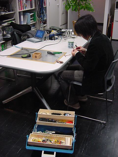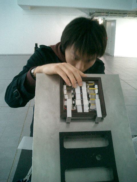 It is cubic object that welds the metal, and there are 64 switches per each six side. Six respects correspond to six kinds of musical instruments of Drum, Bass, Guitar, Synth, Piano, and SE. Creator composed 384 short loop music as a whole. People can enjoy session by pushing an arbitrary button.
