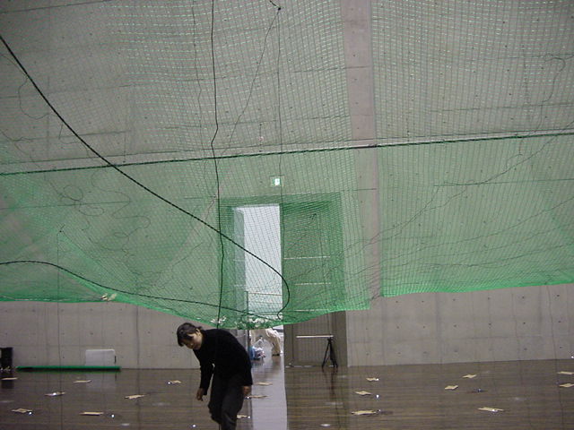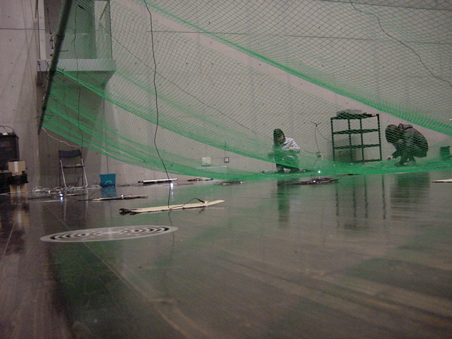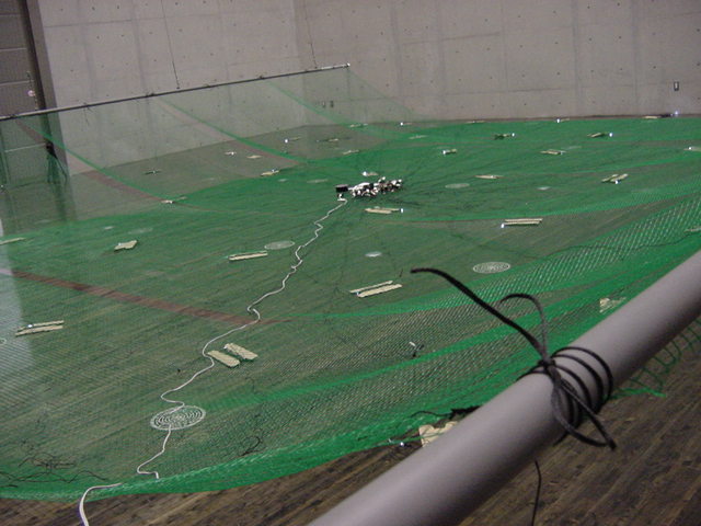 There is a wall where 100 pinwheels of Japanese style lined up in an orderly manner. When people holds up the hand in the table, the shape is recognized with the camera. The wind occurs only in the place of the pinwheel corresponding to the pixel of the shadow, and each pinwheel rotates.