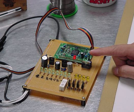 Forming work with four buttons. 168 LED in total draws the pattern of light of each various patterns to which the button is pushed in a translucent acrylic fiber.