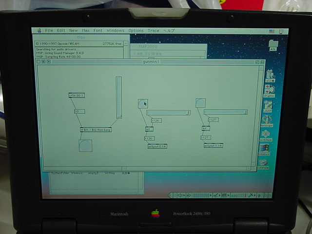 Slider sensor, Gyro Sensor, CCD Camera, Video Mixer, Max/MSP