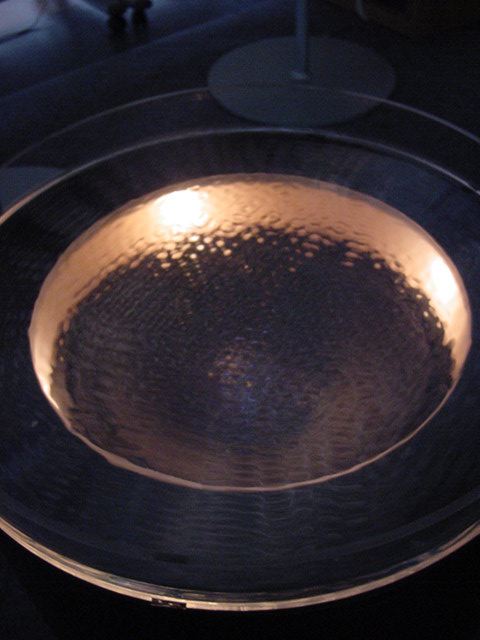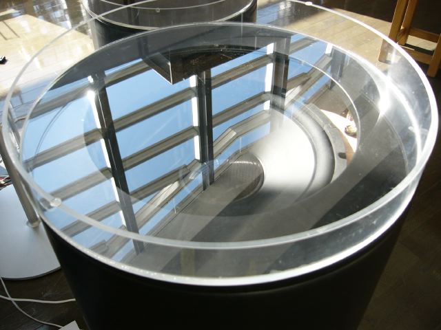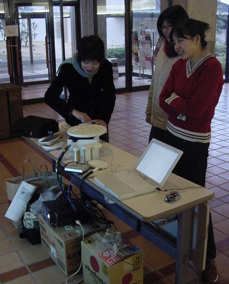 On the table, it is divided into 64 areas. When people puts the glass object, a different sound is generated for each place.