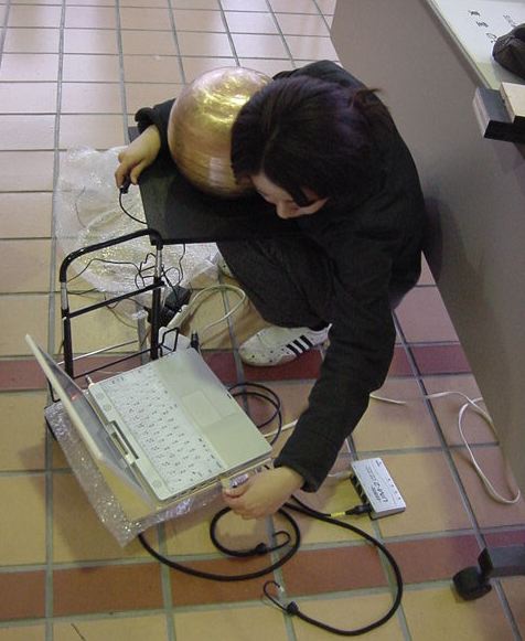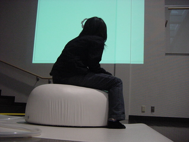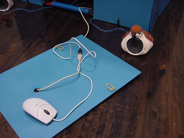 Optics USB mouse is remodeled to a huge size that man can get on. People can draw the picture by hips by riding on this mouse.