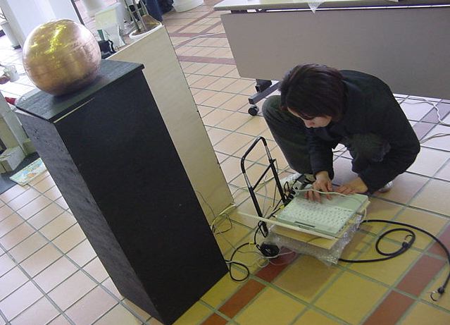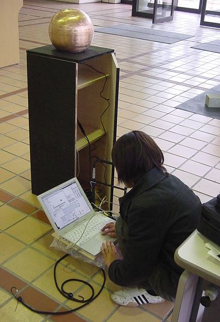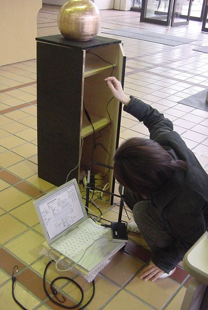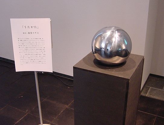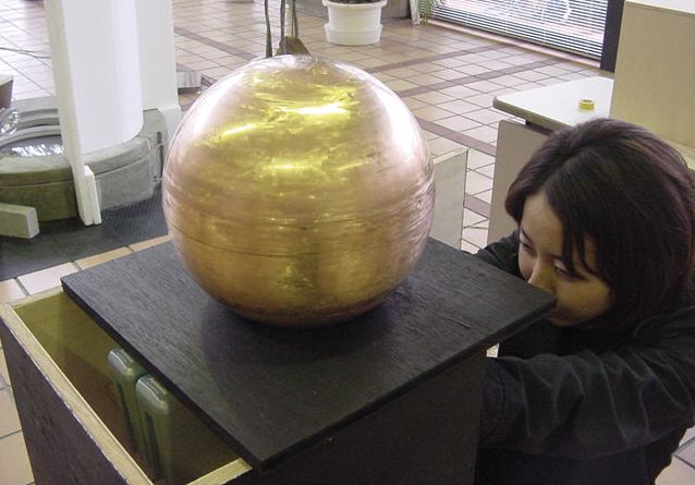 There is a beautiful object of the polished globe. When people touches this globe, it can be heard of the sound corresponding to touching.