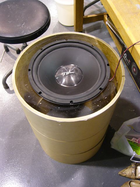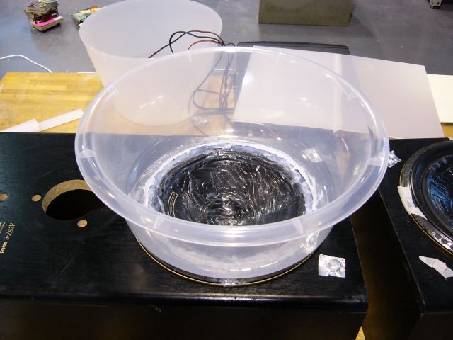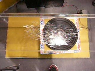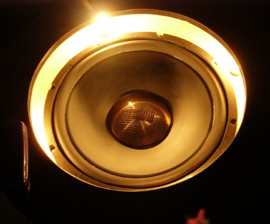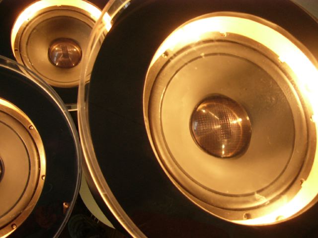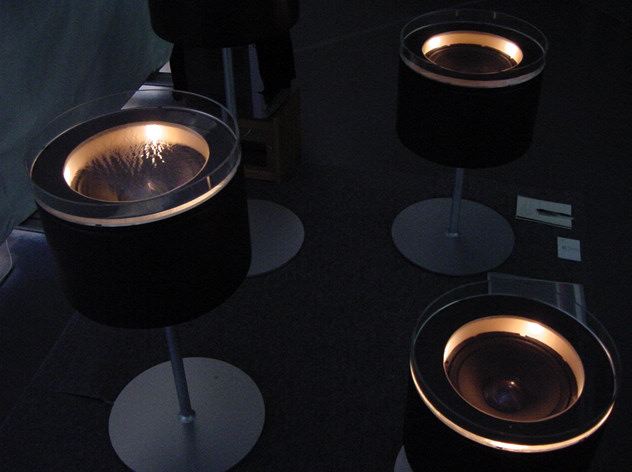 There is a transparent water tank on the huge speaker illuminated from the inside. It appears as various ripples changing into the surface of the water if the deep bass begins to ring from the speaker. To resonate effectively, the tuning of the sound is designed carefully.