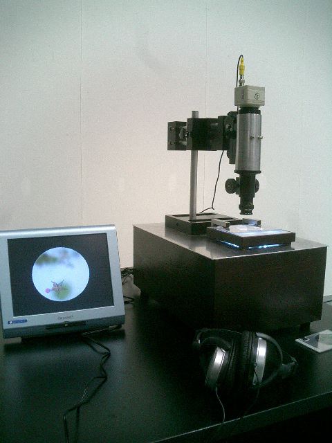 The microscope image corresponding to the screen appears when choosing the device like the microscope from two or more Praparats and setting it. The stand of the Praparat is good up and down and right and left at the slide by about 5cm by the hand. The living thing in the screen moves with the movement of view according to this, and the sound from the headphone moves, too..