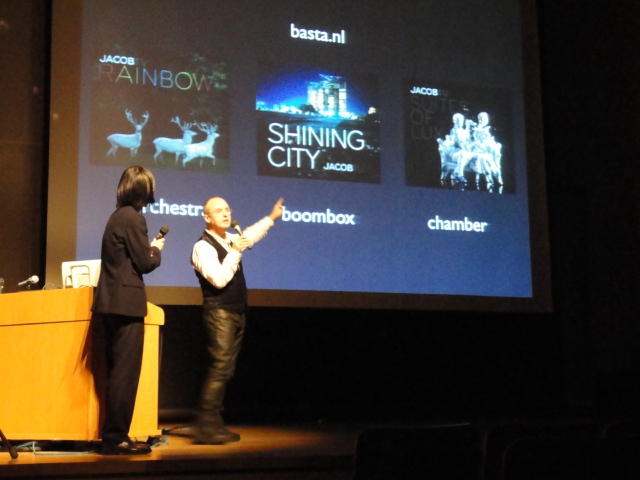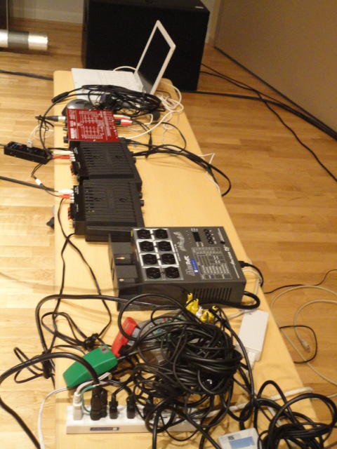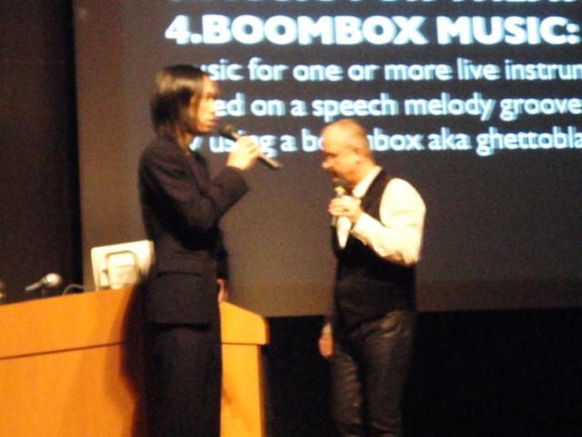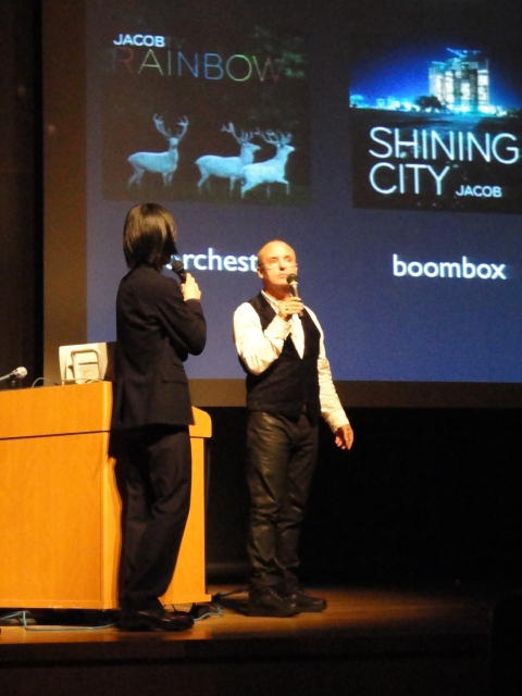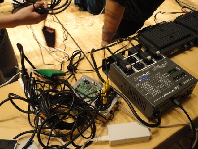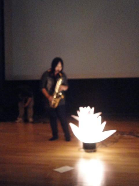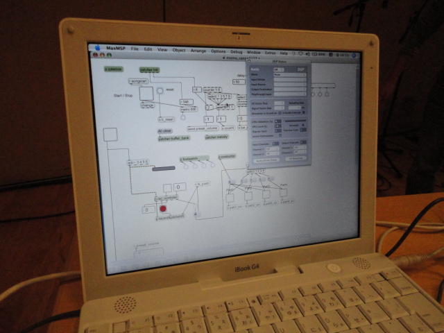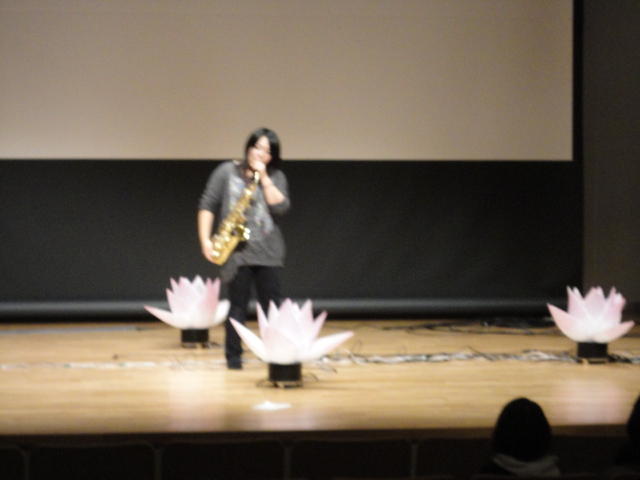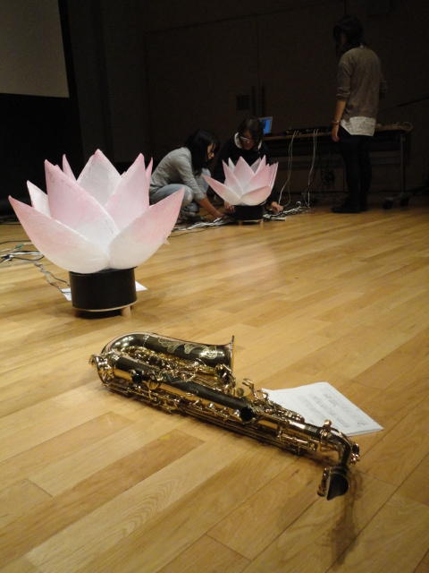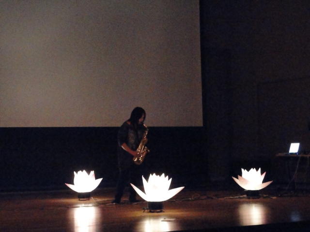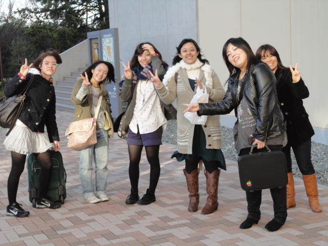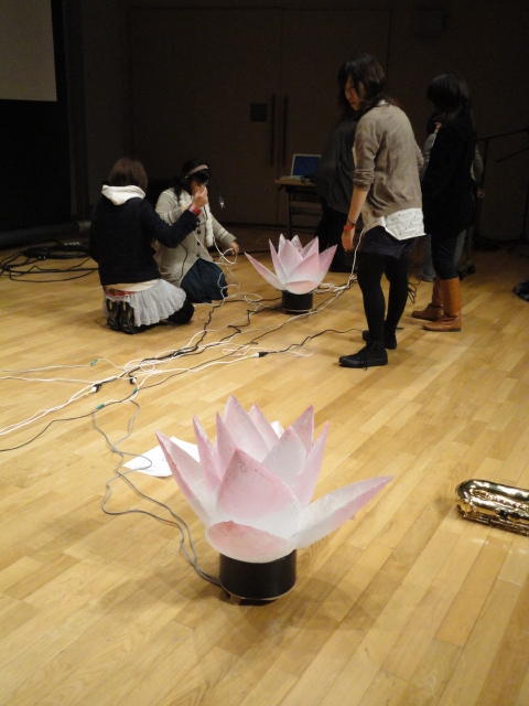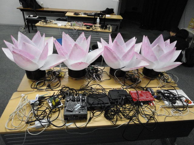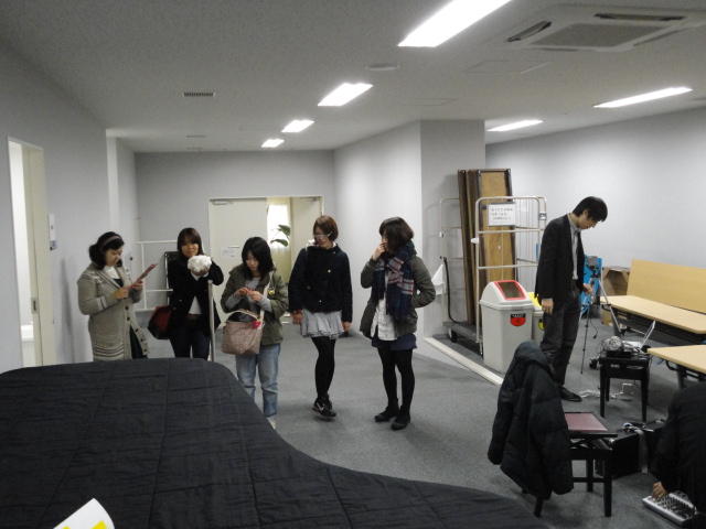 2010年のインカレは、例年と違ってかなり変則的になりました。参加作品としては、僕のCommゼミの今村さんのライブコンピュータ音楽作品の公演、さらに竹田さんと藤嶋さんのアニメーション映像作品上映、と充実したのですが、僕が1日目だけの参加で、翌朝からロシアに出かけてしまったので、写真は3日間のうちの初日だけしかありません(^_^;)。参加したのは4回生の3人(今村・片桐・田畑)と勉強のために参加した2回生の3人(奥山・田中・坂本)に、さらに初日の晩から合流してくれた実習指導の嶋田さんでした。皆んな、準備からステージ周り、さらに打ち上げまでよく頑張りました。(^_^)田畑綾佳