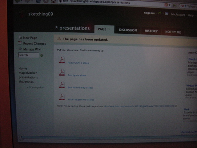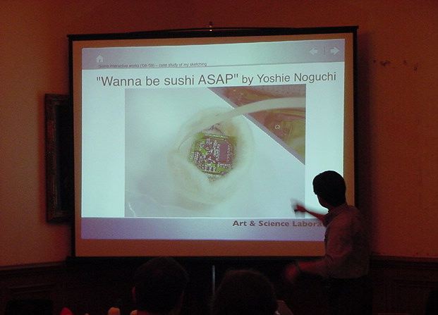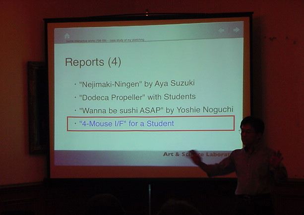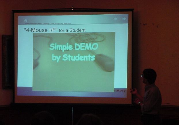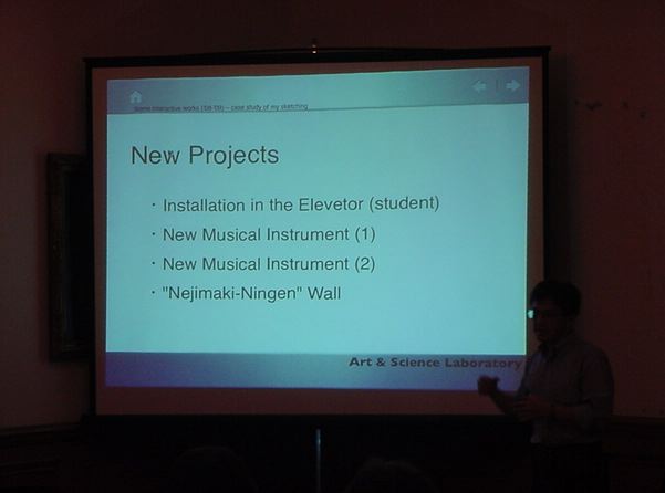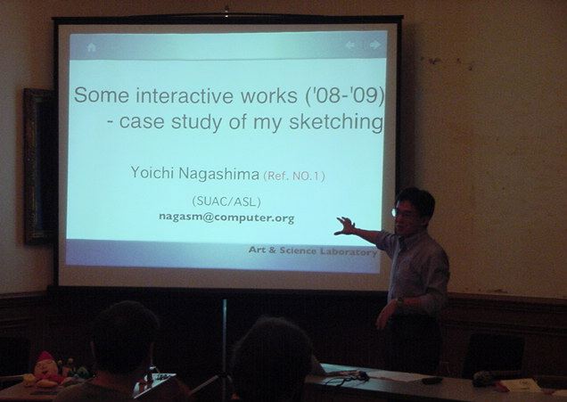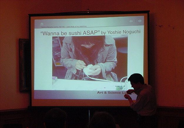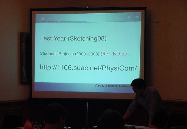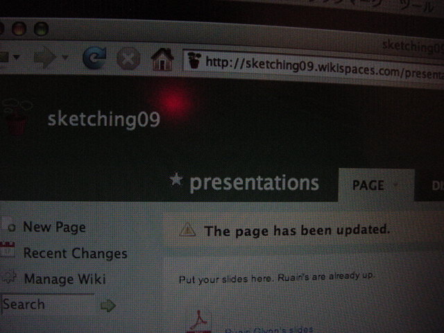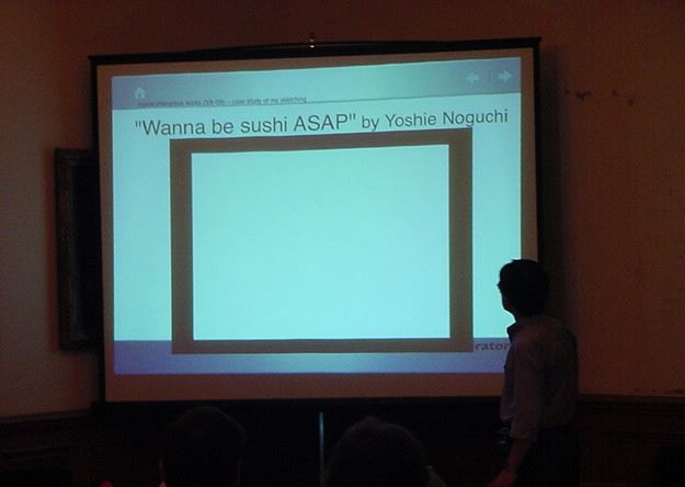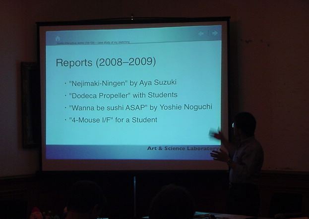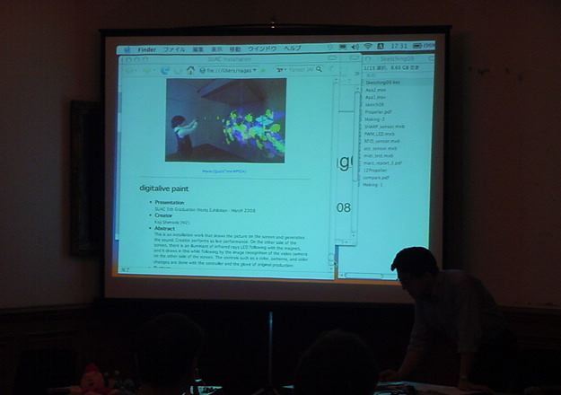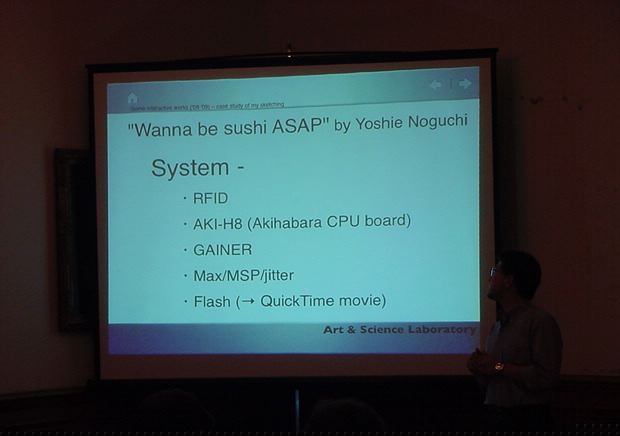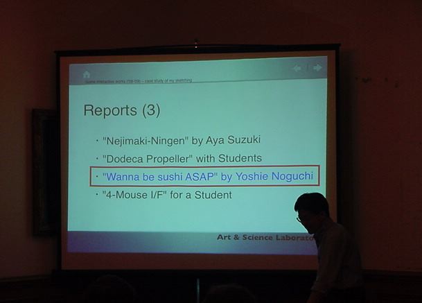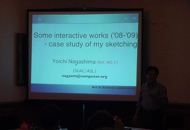 Sketching09も2日目となりました。発表があるので、これが世界初公開となる、野口さんのインスタ作品「はやく寿司になりたい」も設置しました。 ★ ★ ★ ★ ★ ★ ★ ★ ★ ★ ★ ★ ★ ★ ★ ★ ★ここで、僕の発表がありました。いつもは写真もナシなのですが、今回は小林さんに撮ってもらったので写真があります。たぶん国際会議での発表の写真というのは、 ICMC2000の ワークショップ 以来、だと思います。 ★ ★ ★ ★ ★ ★ ★ ★ ★ ★ ★ ★ ★ ★ ★ ★ ★ ★ ★ ★ ★ ★ ★ ★ ★ ★ ★ ★ ★ ★ ★ ★ ★ ★ ★ ★ ★ ★ ★ ★ ★ ★ ★ ★ ★ ★ ★ ★ ★ ★ ★ ★ ★