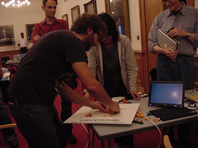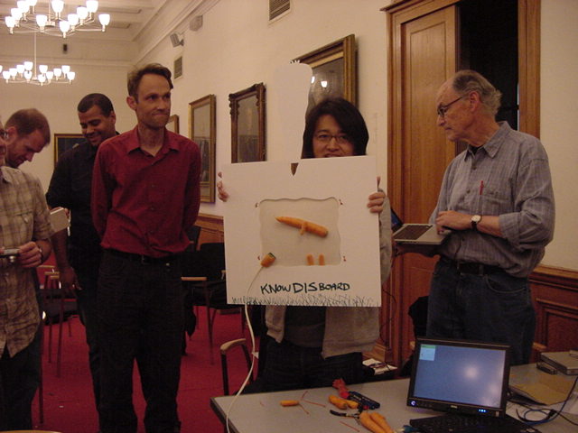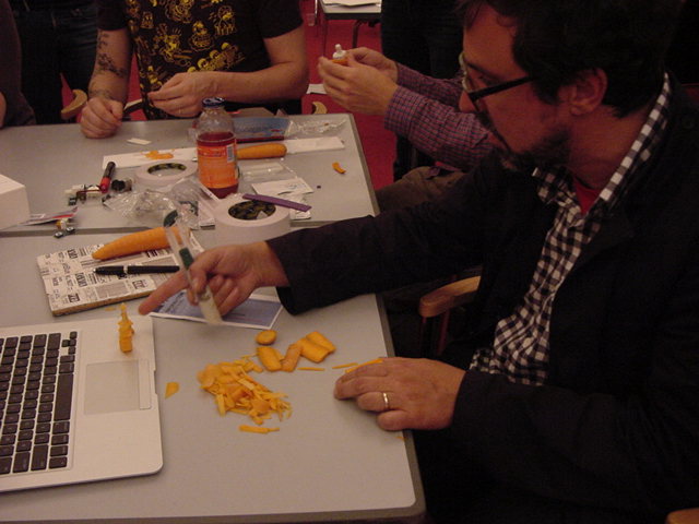 そしていよいよ、Sketching最終日のエキサイティングな時間がやってきました。 前日に一緒に行動したグループごとに、1時間1本勝負で、その場で「何か」を作ってしまう、というスケッチング実技(エクササイズ)のセッションです。テーブルにはいくつかの材料と部品が積み上げられ、テーマは前日の「ニンジン」です。僕もハンダ付けをしたりjitterカメラをセットしたり色々と忙しかったので、写真は後半のごく一部のみです。最後に全体でプレゼンし合いました。 ★ ★ ★ ★ ★ ★ ★ ★ ★ ★ ★ ★ ★ ★ ★ ★ ★ ★ ★ ★ ★ ★ ★ ★ ★ ★ ★ ★ ★ ★ ★ ★ ★ ★ ★ ★ ★ ★ ★ ★ ★ ★ ★ ★ ★ ★ ★ ★ ★ ★ ★ ★ ★ ★ ★ ★ ★ ★ ★ ★ ★ ★ ★ ★ ★ ★ ★ ★ ★ ★ ★ ★ ★ ★ ★