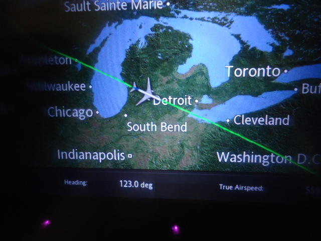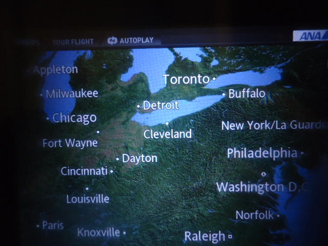 成田からワシントンD.C.までの長いフライト。ただし12時間の予定が「追い風」によって1時間以上も早く着いた。乗り継いで最終目的地であるデトロイトの真上を通過 ★ ★ ★ ★ ★ ★ ★ ★ ★ ★ ★ ★ ★ ★ ★ ★ ★ ★ ★ ★ ★ ★ ★ ★ ★ ★ ★ ★ ★ ★ ★ ★ ★