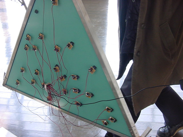 - システム 赤外線センサ、静電気センサ、Max/MSP、CCDカメラ、ビデオスイッチャ