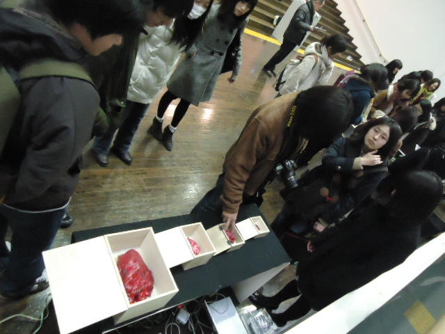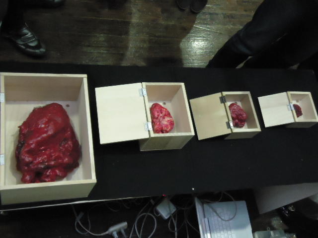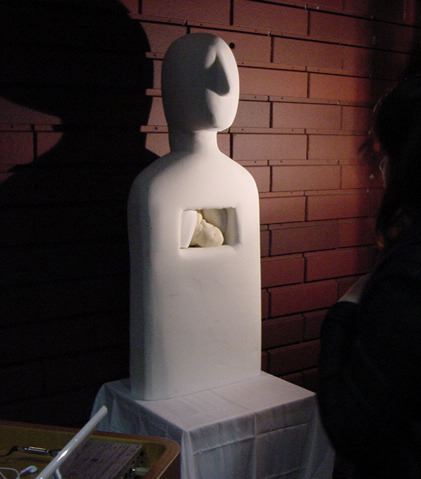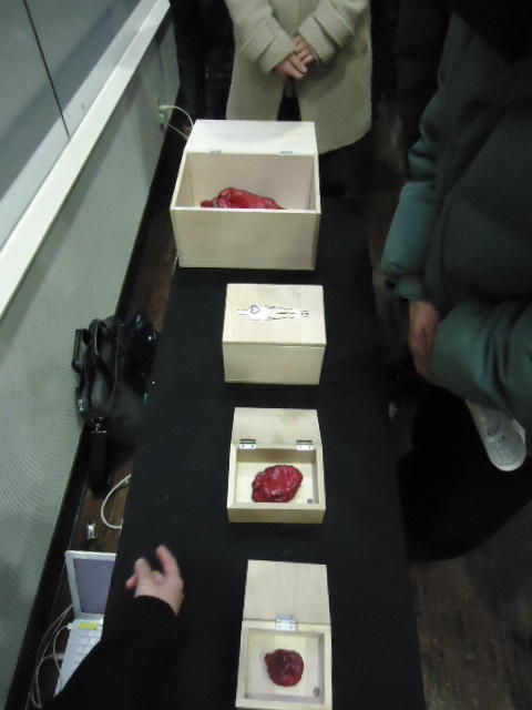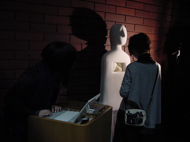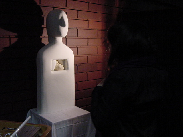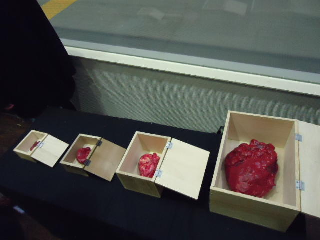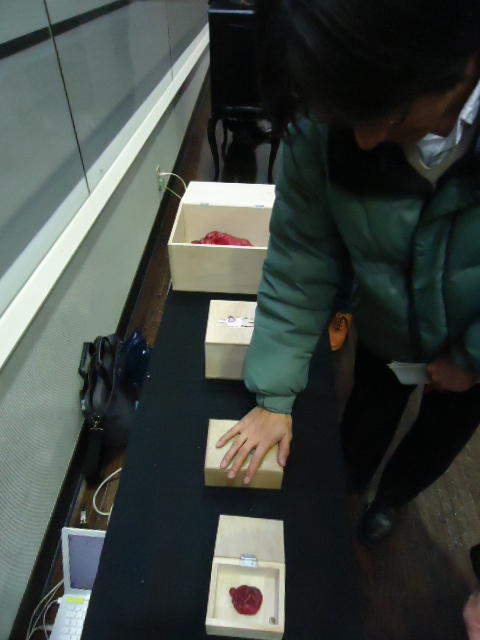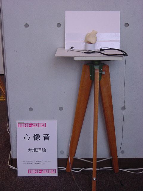 - 概要 来場者は聴診器をつけて自分の心臓の音を聞く。この音から鼓動が検出されて、造形にある人間の心臓そっくりのシリコン製の心臓が、エアー制御によって拍動するのが自分で見える