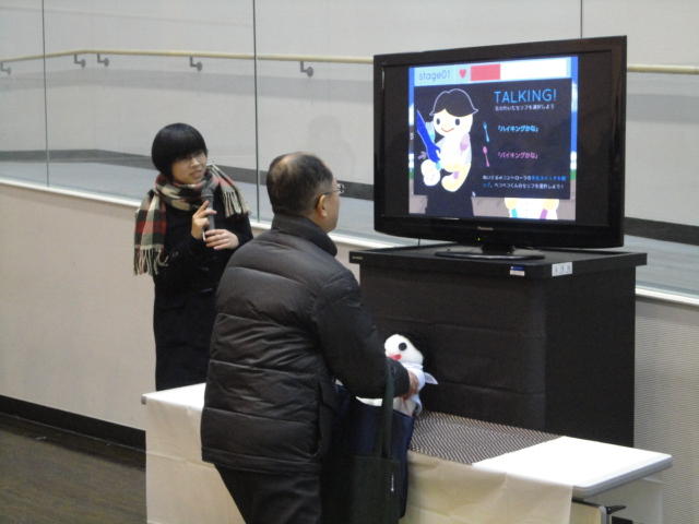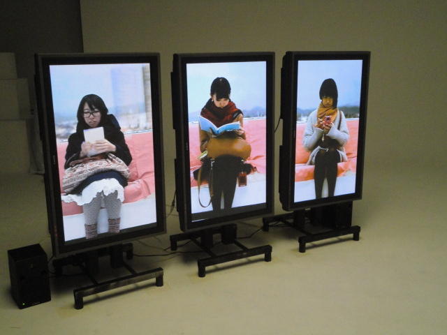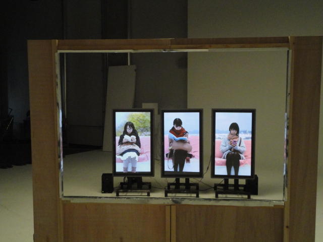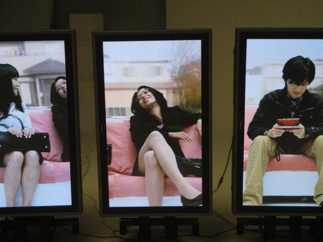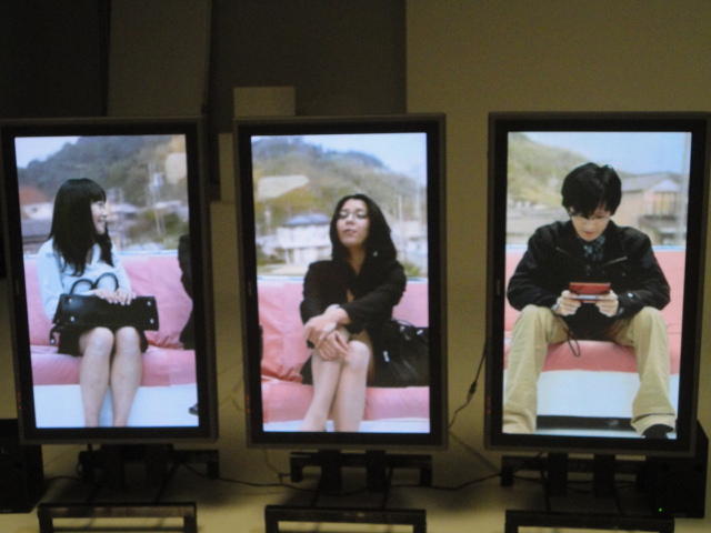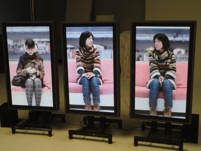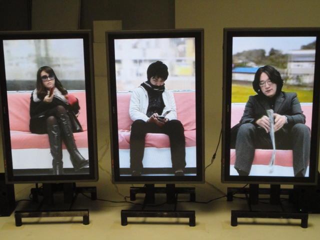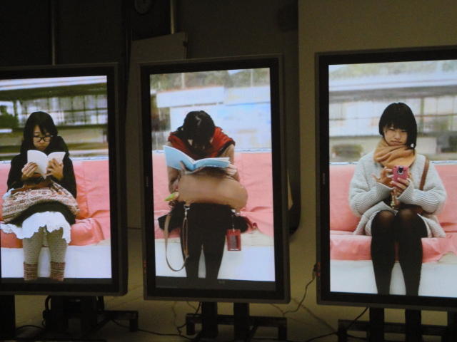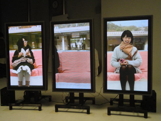 - 概要 体験者が座る椅子の向かいには、電車で向かいの席に座る乗客の姿を表示する3つのモニタが並んでいる。3つの画面の背景の窓の風景はちゃんと繋がって電車の進行のように変化し、向かいの席に次々と座る人たちの、いろいろな人間模様を楽しめる