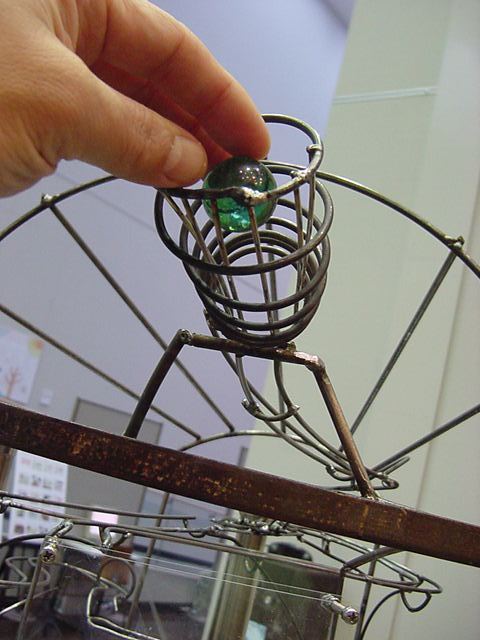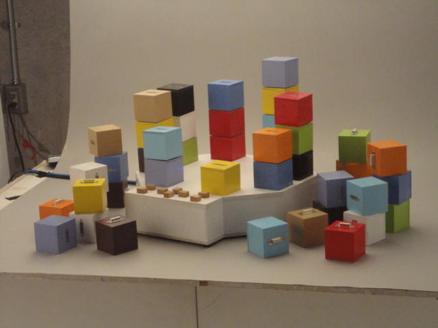 - 概要 11種類の異なった色(4色は打楽器音、7色は異なった高さの楽器音)それぞれ4個、計44個のキュープを、8角形の台のソケット上に自由に積んでいく。8角形の台の中央には8カ所のソケットに対応したブルーLED8個のうち1個が点灯し回転していて、点灯している場所のソケット上の全てのキュープに対応した音が鳴る。手前のスイッチでは、演奏のStart/Stop、楽器音の音色の変更、楽器音の音量の上下、テンポの変更、楽器音の音域の変更などを指定できる